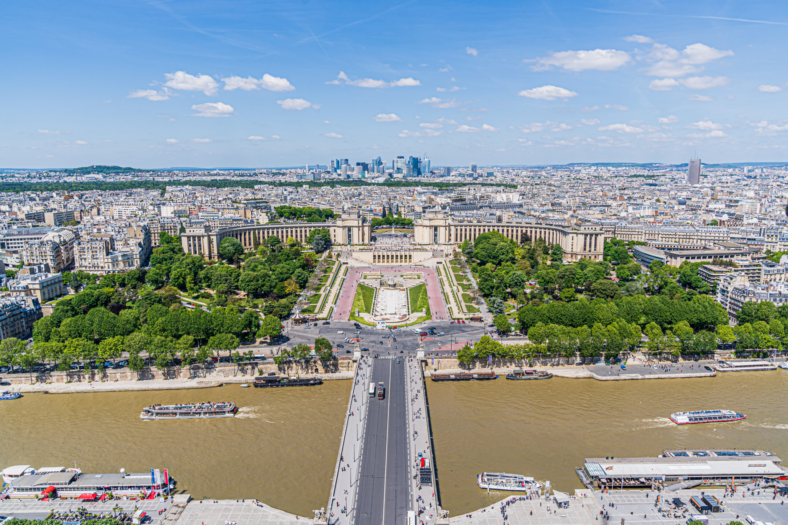 Το Παλάτι του Τροκαντερό, αυτό το συγκρότημα μαυριτανικής και νεοβυζαντινής διακόσμησης που φτιάχτηκε για την Παγκόσμια Έκθεση του 1878, κατεδαφίστηκε για να δημιουργηθεί το, γεμάτο μουσεία σήμερα, Palais de Chaillot. Όταν τα πλήθη γεμίσουν τους κήπους, μπορείτε να καταφύγετε στο Café Lucy εντός του παλατιού Musée de l’Homme, προκειμένου να απολαύσετε τη θέα.