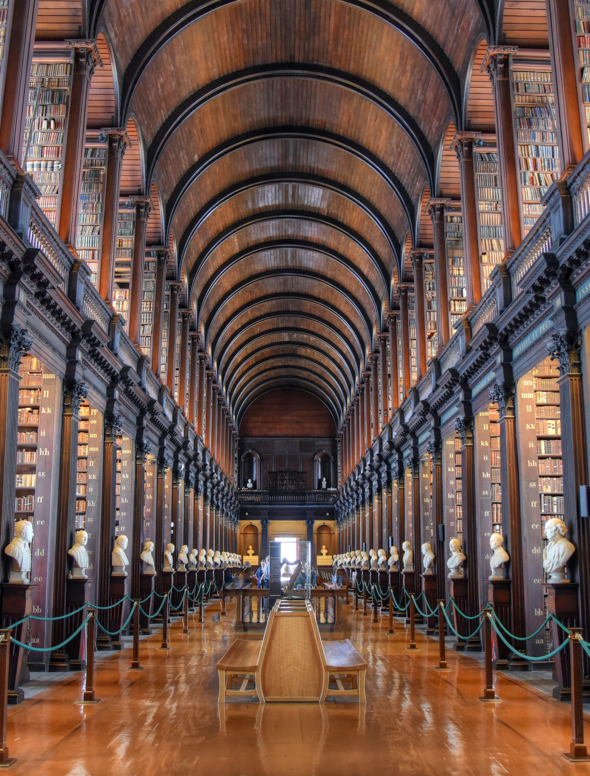 Μυηθείτε στην ατμόσφαιρα του Trinity College, του παλαιότερου πανεπιστημίου της Ιρλανδίας. Η εκπληκτική Παλαιά Βιβλιοθήκη φιλοξενεί το περίφημο Book of Kells, ένα πανέμορφο εικονογραφημένο χειρόγραφο που χρονολογείται από τον 9ο αιώνα. Θαυμάστε τις περίπλοκες λεπτομέρειές του και εξερευνήστε το εντυπωσιακό Long Room της βιβλιοθήκης, που είναι γεμάτο με αρχαία βιβλία και μαρμάρινες προτομές.