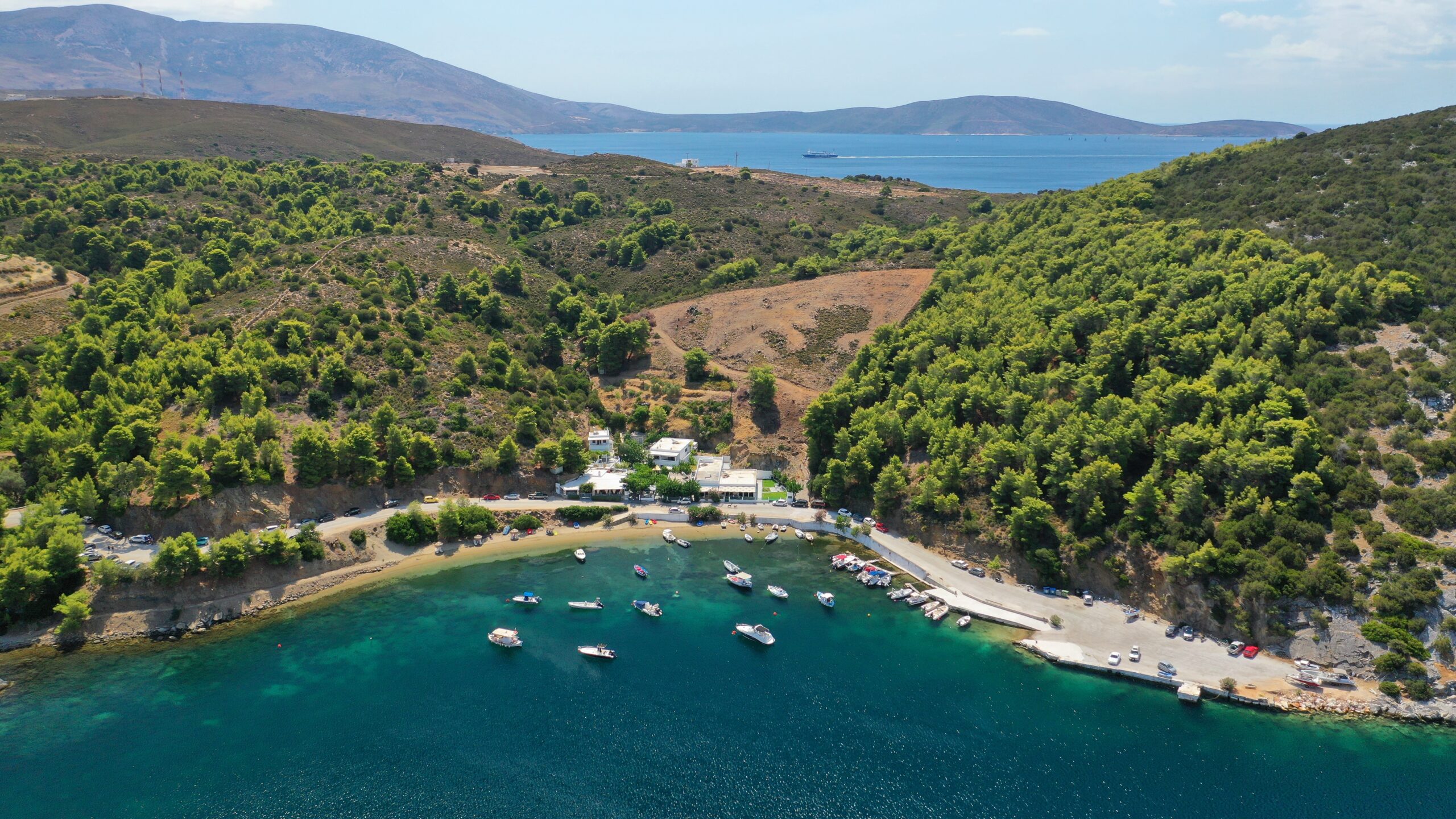 Η παραλία Πεύκος στα δυτικά διαθέτει επίσης δέντρα που φθάνουν μέχρι το κύμα και είναι από τις λίγες παραλίες που διαθέτουν επιλογές για καφέ και φαγητό. Ακόμα περισσότερες επιλογές και ξαπλώστρες και beach bars διαθέτει η παραλία Μαγαζιά.