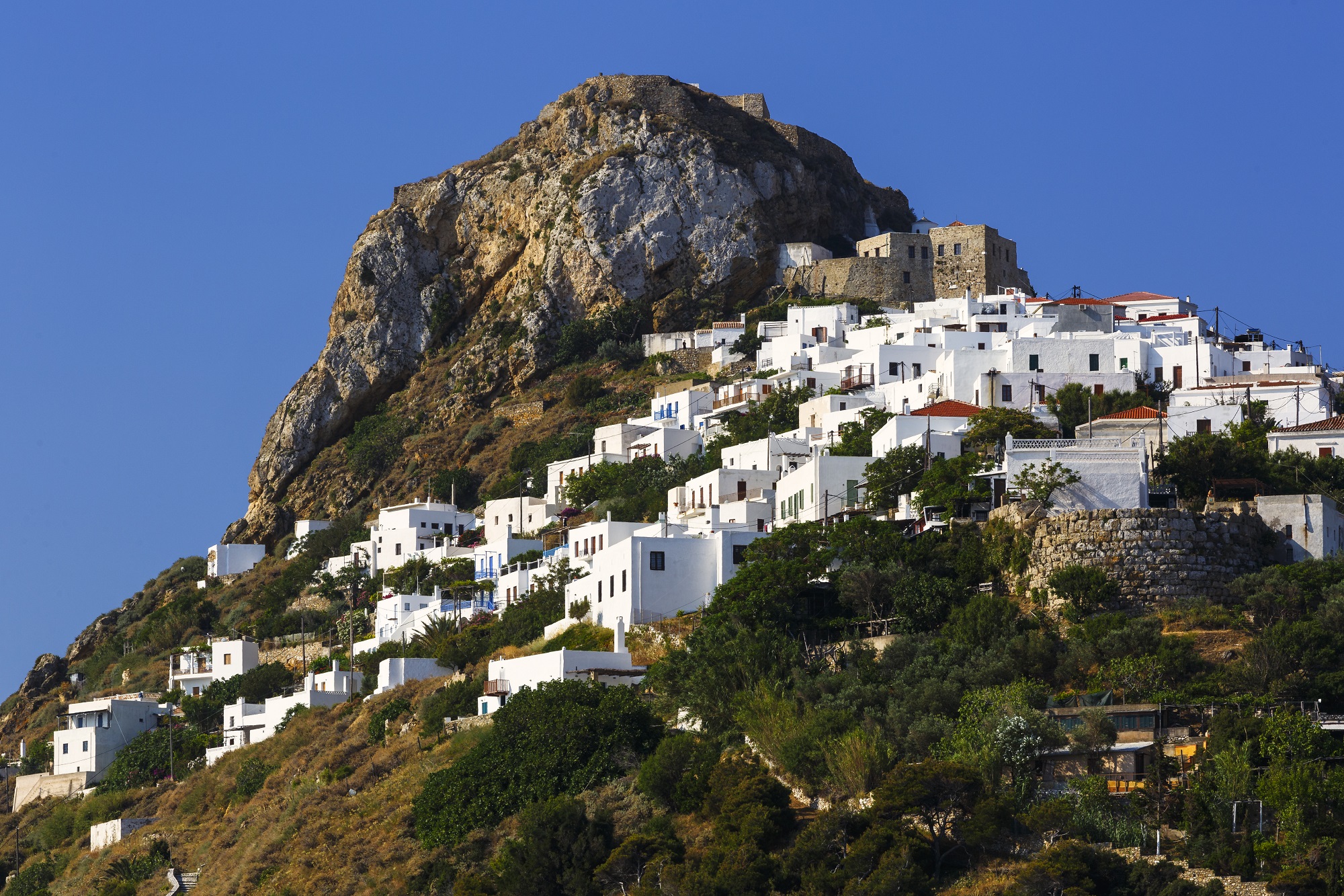 Σε βράχο πάνω από τη Χώρα δεσπόζει το Κάστρο. Εδώ, εικάζεται ότι υπήρχε αρχαία ακρόπολη, η οποία ήταν οχυρωμένη σε όλη την κλασική περίοδο και αργότερα στους Ρωμαϊκούς και στους Βυζαντινούς χρόνους. Τούρκοι και Ενετοί προσέθεσαν στοιχεία και σήμερα το κάστρο αξίζει την ανηφορική βόλτα και για την πανοραμική θέα του νησιού και της θάλασσας.