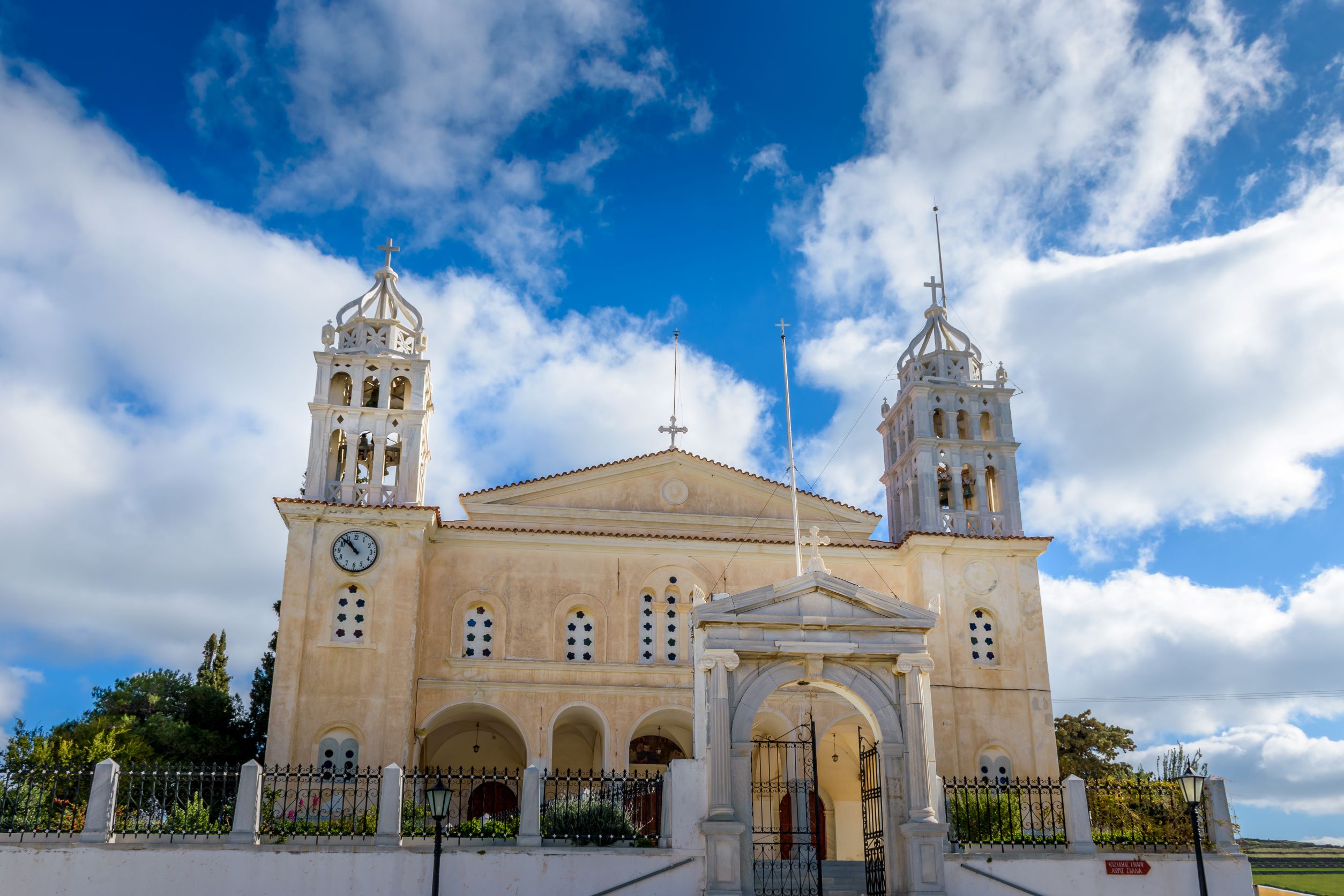 Αν όμως θέλετε κάτι πιο γκράντε, θα επιλέξετε την Ιερά Μονή του Αγίου Νικολάου, την μητρόπολη του νησιού, πάνω από το παλιό λιμάνι. Το καμπαναριό, η είσοδος αλλά και το μεγάλο βοτσαλωτό προαύλιο είναι ιδιαίτερα εντυπωσιακά. Από την άλλη πλευρά τώρα του νησιού, προς την Κουνουπίτσα, ο ιερός ναός του Αγίου Ιωάννη Προδρόμου με το πολύ πράσινο γύρω του είναι μια πολύ όμορφη επιλογή.