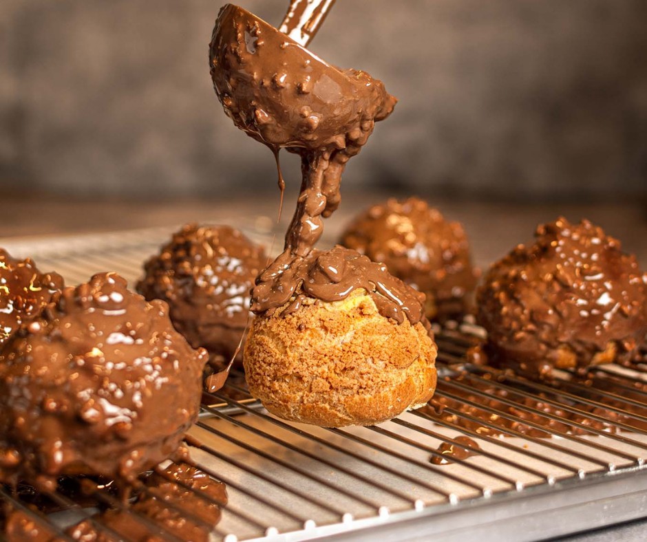 Τα ευωδιαστά σουδάκια είναι πάντοτε φρεσκοψημένα, μιας και βγαίνουν από το φούρνο κάθε μία ώρα. Λίγο μετά, γεμίζονται είτε με βελούδινη κρέμα πατισερί με βανίλια Μαδαγασκάρης, είτε με φρέσκο χειροποίητο παγωτό ενώ λαχταριστές σοκολάτες – γάλακτος, μπίτερ, λευκή, πραλίνα – συμπληρώνουν την γλυκιά δημιουργία.