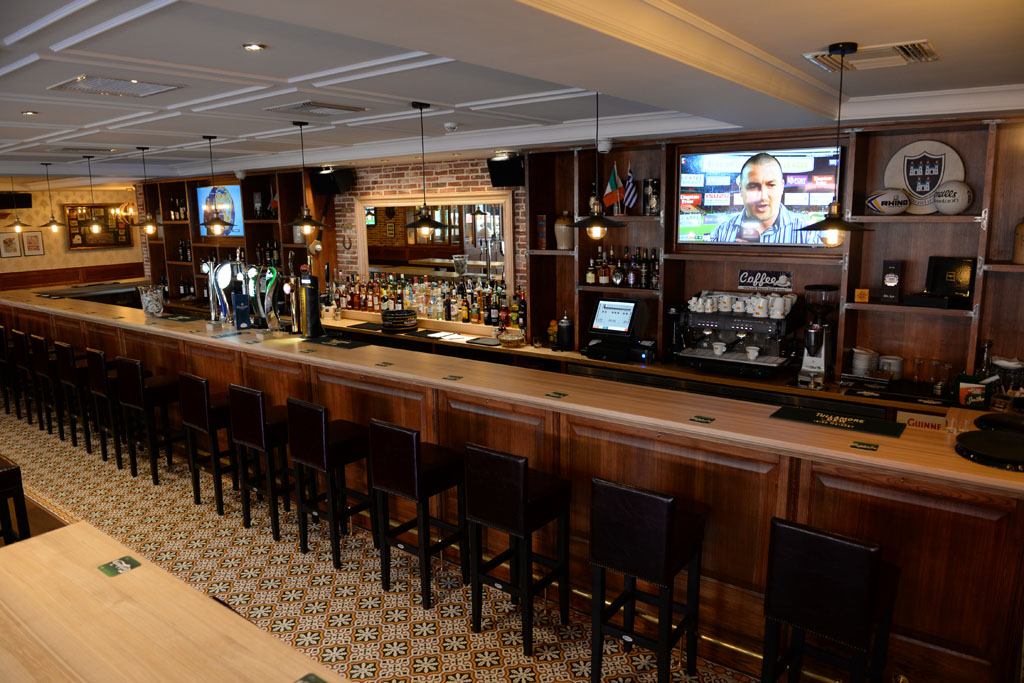 Καθισμένοι, είτε στο εντυπωσιακό ξύλινο μπαρ, μήκους 11 μ., είτε στην κεντρική σάλα με τα αναπαυτικά καθίσματα απολαμβάνουμε την αυθεντική ιρλανδική ατμόσφαιρα. Ανάλογα και με τη διάθεση της στιγμής, παρακολουθώντας κάποιο κορυφαίο αθλητικό γεγονός σε μια από τις πέντε μεγάλου μεγέθους τηλεοράσεις, απολαμβάνοντας πιάτα από το μενού με τις παραδοσιακές ιρλανδικές σπεσιαλιτέ (πίτα με μοσχάρι μαγειρεμένη σε μπύρα Guinness, λουκάνικα με πουρέ, fish & chips κτλ.) ή επιλέγοντας ένα ιρλανδικό ουίσκι. Όπως και να ‘χει, στην ιρλανδική παμπ, στα Λαδάδικα της Θεσσαλονίκης, θα μας καλωσορίσουν παραδοσιακά, «Céad míle fáilte agus Sláinte!» δηλαδή «Καλώς Ήλθατε! Στην υγειά σας!».