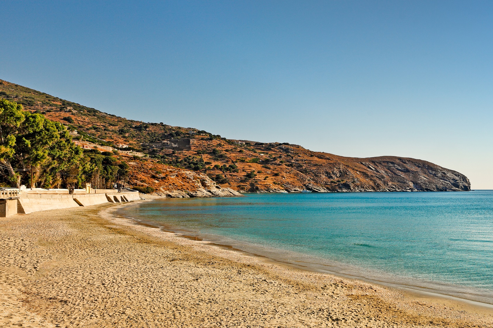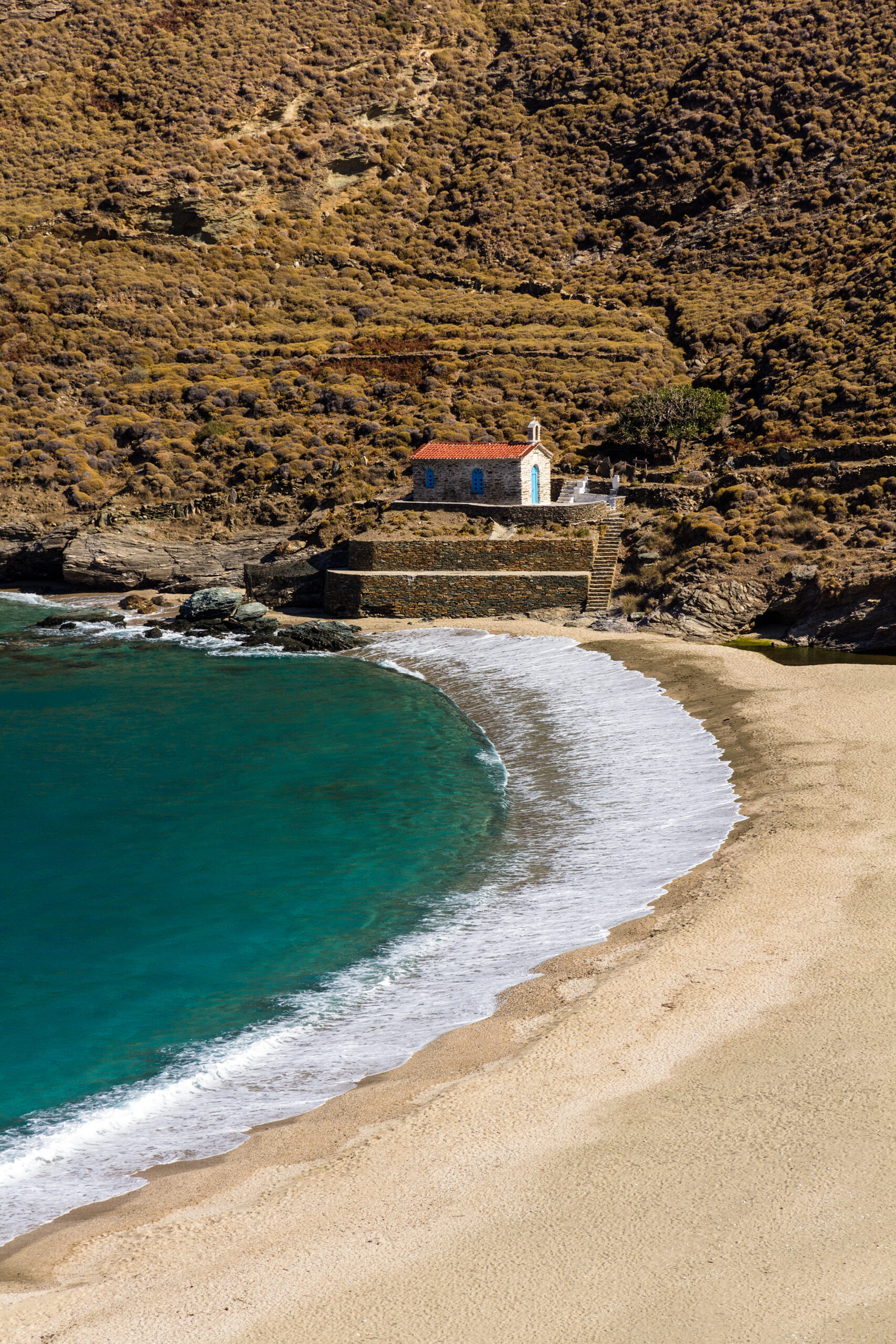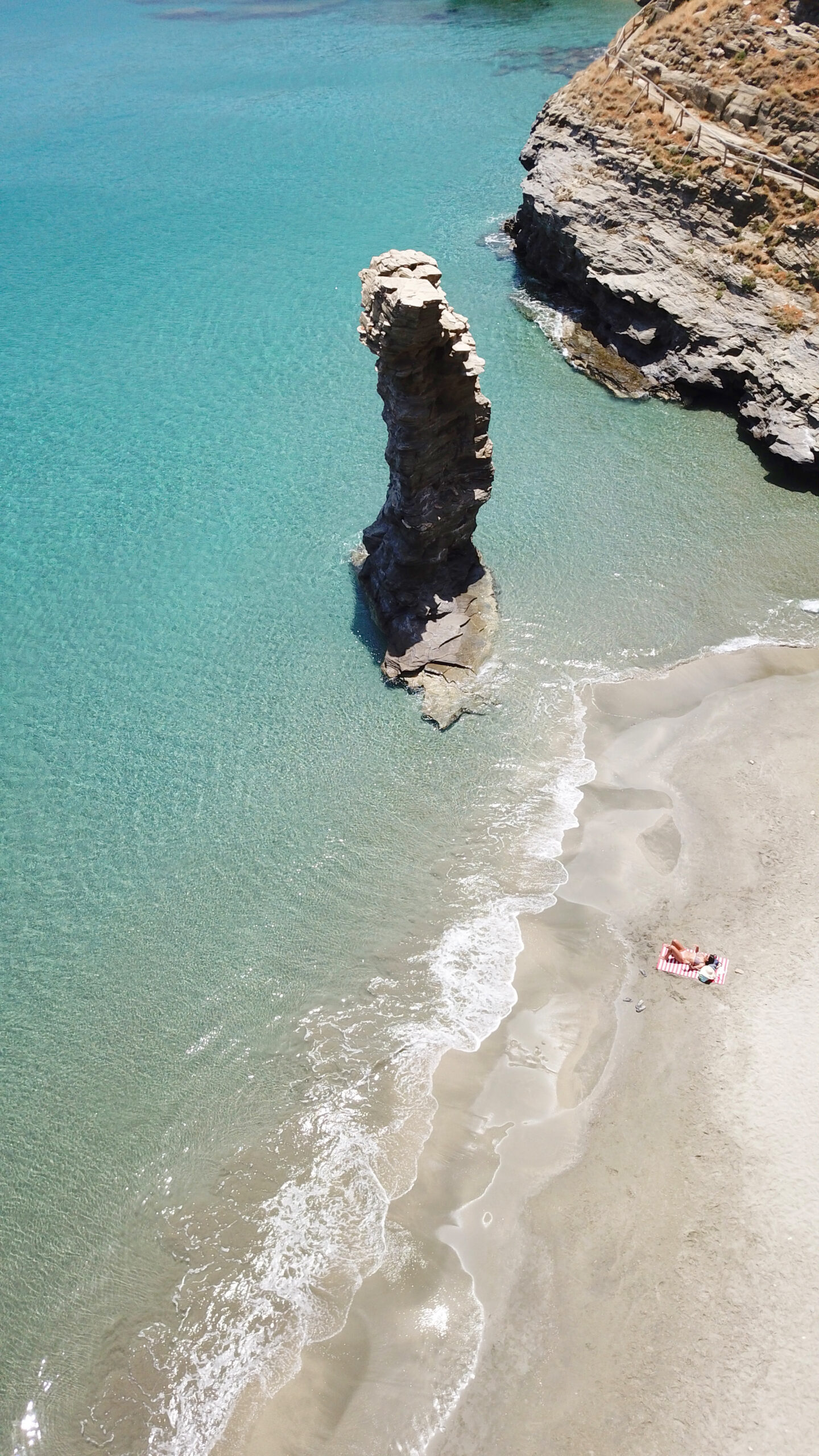 Η πρώτη εικόνα από ψηλά, καθώς πλησιάζεις στον μεγάλο κόλπο με την αμμώδη παραλία, δικαιολογεί τη θέση της ανάμεσα στις ωραιότερες του νησιού. Έχει πεντακάθαρα νερά και εντυπωσιακά βράχια. Είναι οργανωμένη σε ένα σημείο, αλλά υπάρχει και πολύς ελεύθερος χώρος. Λειτουργεί ταβέρνα. Η παραλία βρίσκεται στη Βορειοδυτική ακτογραμμή της Άνδρου, απέχει 17 χλμ. από το Γαύριο και η πρόσβαση γίνεται από ασφαλτόδρομο και βατό χωματόδρομο. Σας συνιστούμε να έρθετε μόνο όταν δεν φυσάει.