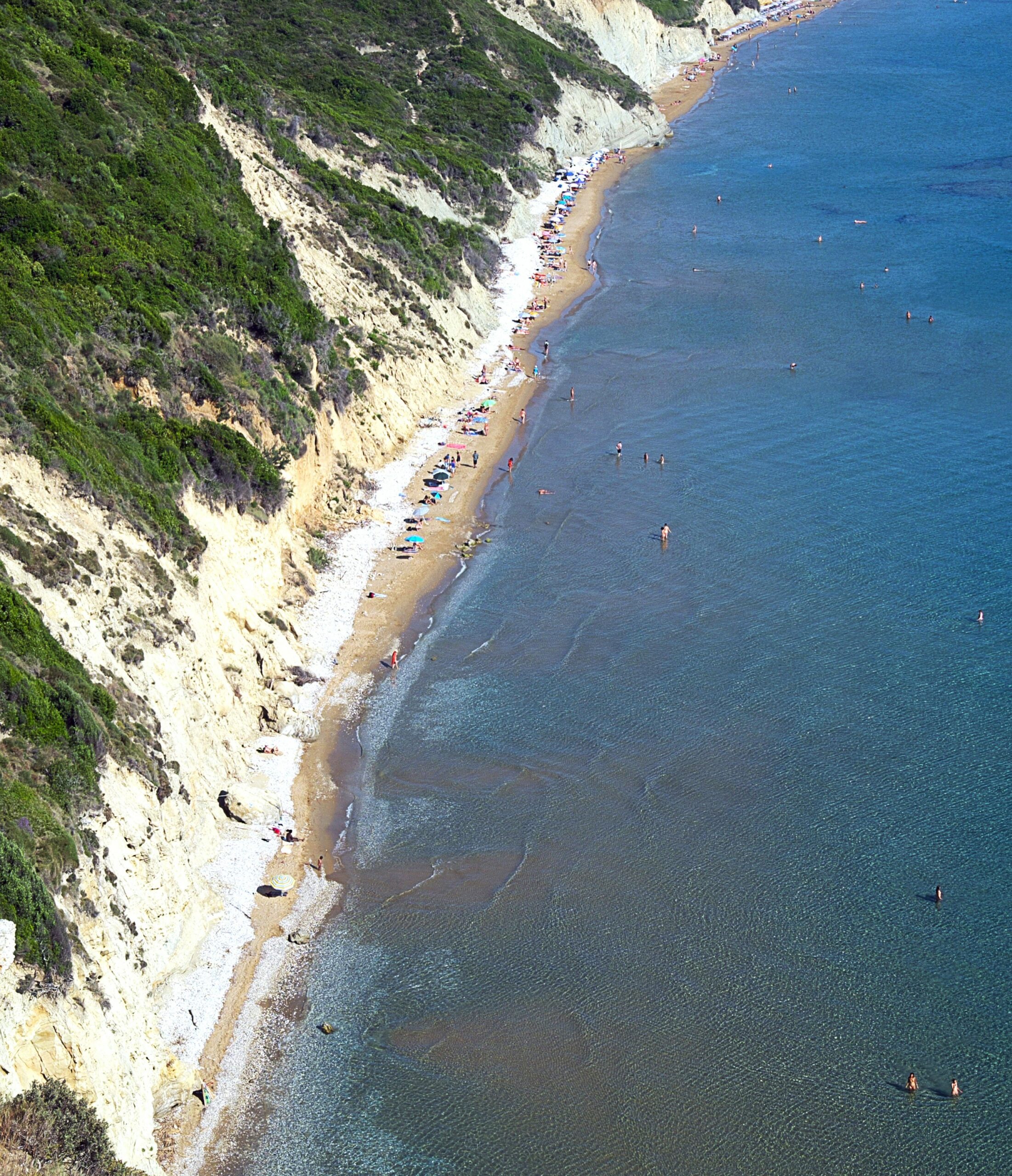 Τα βραχάκια στις άκρες της παραλίας είναι τέλεια για εξερεύνηση με μάσκα. Κοντά στην παραλία του Αγίου Γορδίου απλώνεται η παραλία της Γλυφάδας, αν και έχει αρκετά νεανικό προφίλ είναι ιδανική και για οικογένειες καθώς τα νερά είναι ρηχά και η άμμος εξαιρετική για κάστρα με τάφρους και γέφυρες. Πλήρως οργανωμένη διαθέτει και μεγάλο ελεύθερο τμήμα. Όσο πιο νωρίς πάτε τόσο πιο εύκολα θα παρκάρετε. Στα ανατολικά, η παραλία Κερασιά έχει καταπληκτικά νερά και αξίζει τον κόπο να την επισκεφθείτε και ας έχει βοτσαλάκι αντί για άμμο. Το πράσινο φόντο προσθέτει ομορφιά ενώ δεν πήζει από κόσμο, εξαρτάται βέβαια και πότε θα πάτε. Πιο νότια βρίσκεται η παραλία Ύψος, η οποία αν και είναι στενή έχει εύκολη πρόσβαση. Έχει αρκετά ρηχά νερά αλλά και waterpark για έξτρα διασκέδαση.