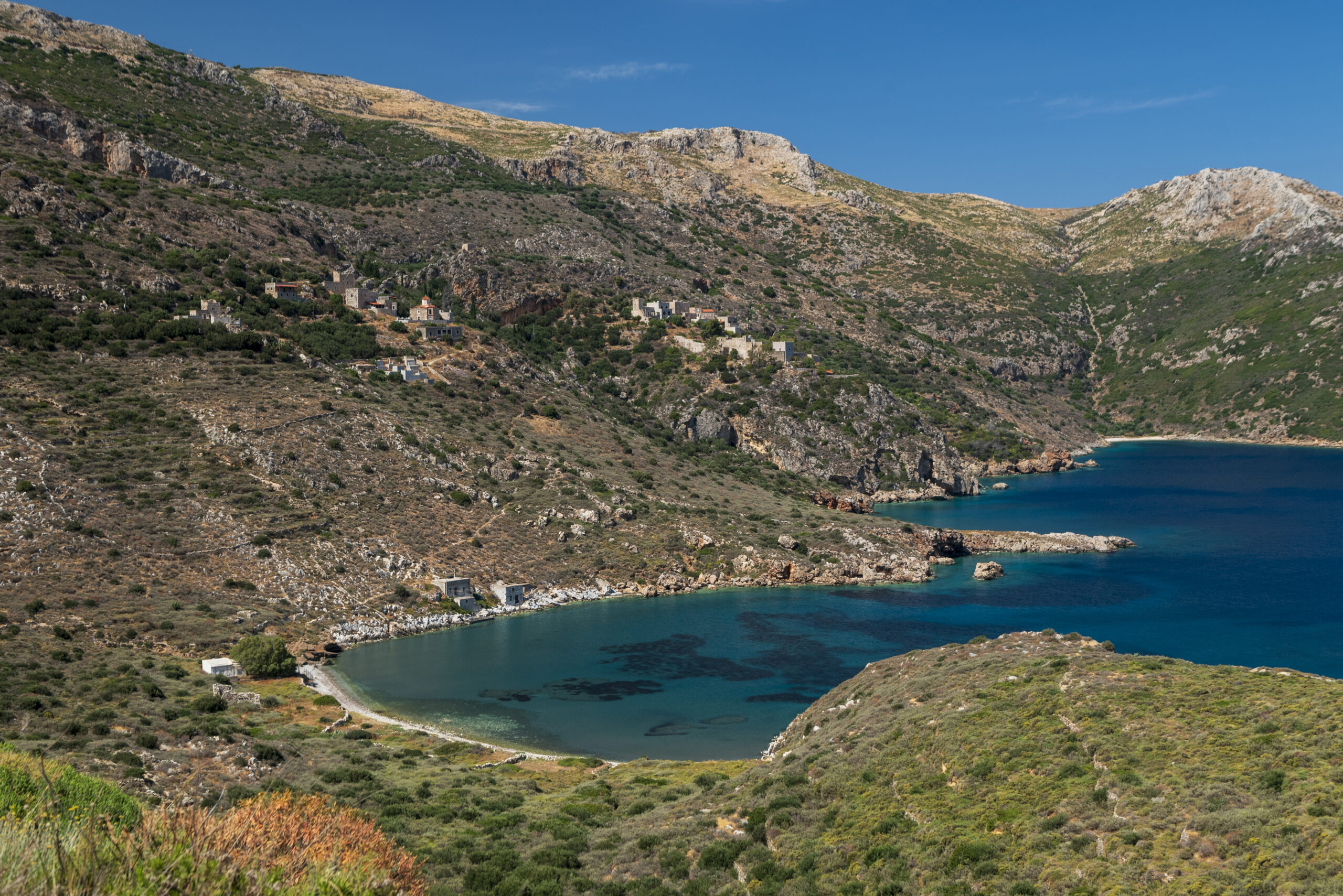 Πράσινα διαυγή νερά και κροκάλες έχει η Κυπάρισσος, αυτό το μικρό λιμανάκι με τα λιγοστά πετρόχτιστα σπίτια του ομώνυμου χωριού. Μπάνιο σαν άλλοτε και μακριά απ΄τον κόσμο. Η μικρή παραλία της Βάθειας, που διακρίνεται από τον δρόμο σάς λέει την καθαρή αλήθεια: «Διαθέτω για σας μόνο λίγα βότσαλα να ξαποστάσετε και άφθονο αλμυρό νερό για να κολυμπήσετε». Για ήσυχο μπανάκι προσφέρεται και η μικρή παραλία στα Γυάλια που διαθέτει μεγάλα αρμυρίκια για σκιά. Ιδανικό μέρος για διάβασμα.