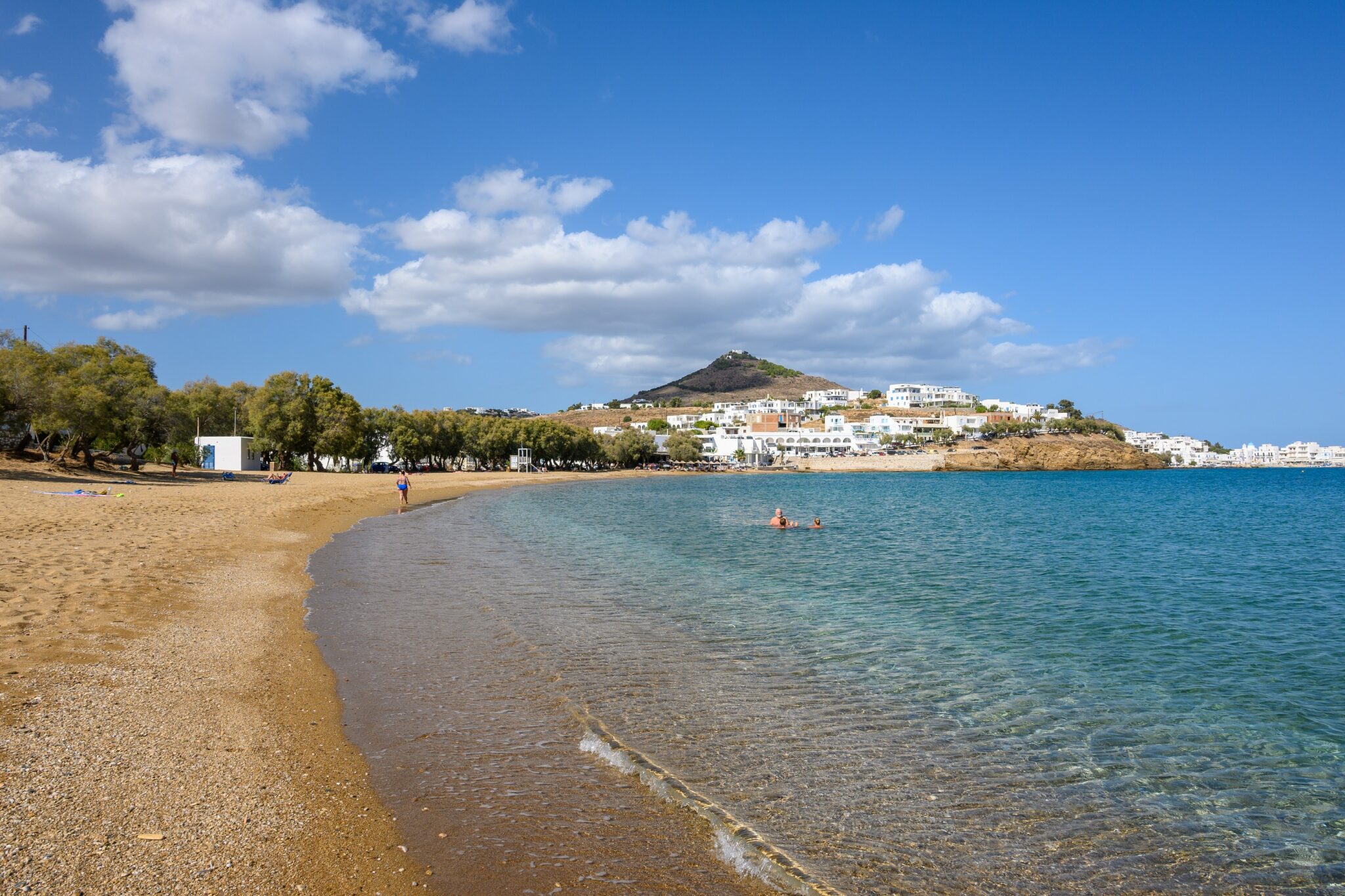 Κριός. Πολυσύχναστη, μεγάλη και απάνεμη παραλία, βόρεια της Παροικιάς, με άμμο, πεντακάθαρα νερά και αρμυρίκια. Τριγύρω της βρίσκονται πολλά beach bars και εστιατόρια. Υπάρχει κάμπινγκ και υποδομές για οικογένειες.