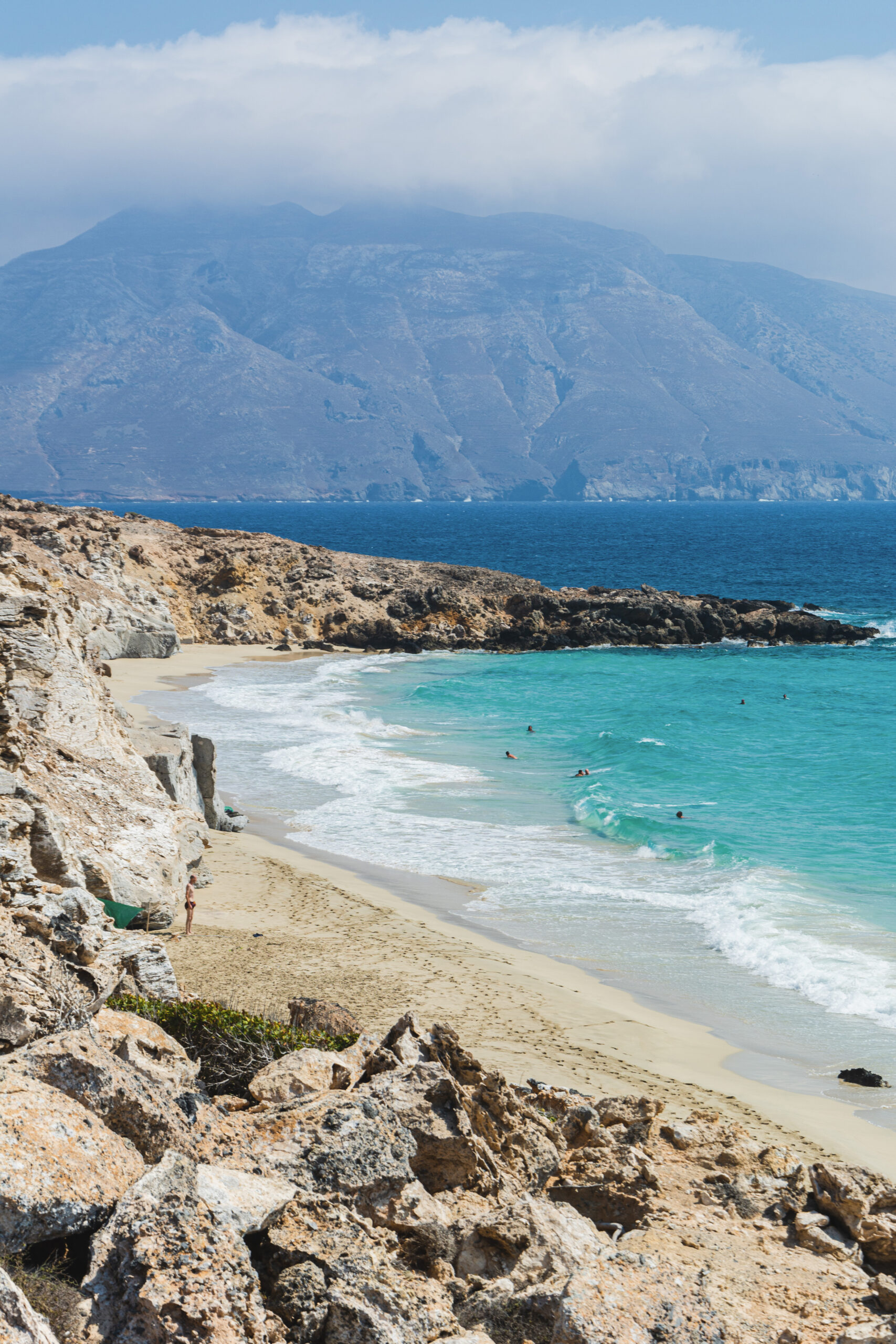 Εδώ έχουμε να κάνουμε με νερά αχαρτογράφητα για τον περισσότερο κόσμο. Το νοτιοανατολικό άκρο της χώρας μας είναι γεμάτο εκπλήξεις! Η Σαρία σίγουρα αποτελεί μια πραγματική αποκάλυψη, καθώς μιλάμε για νησί ακατοίκητο, που αποτελούσε μια από τις 4 αρχαίες πόλεις της Καρπάθου, νησί ευλογημένο, με εκπληκτικές ακτές, προσβάσιμες μόνο από τη θάλασσα. Μία από τις παραλίες που αναμφίβολα θα θέλετε να επισκεφθείτε για βουτιά και στάση είναι η Αλιμούντα που βρίσκεται στο βόρειο κομμάτι του νησιού, πλήρως προστατευμένη από τον βοριά. Τα κρυστάλλινα πρασινωπά νερά της αποτελούν τον ιδανικότερο τρόπο για να δροσιστείτε μια ζεστή καλοκαιρινή ημέρα. Μην παραλείψετε να έχετε μαζί σας καλοκαιρινή μάσκα καθώς ο βυθός είναι ιδιαιτέρως συναρπαστικός! Πρόσβαση: μέσω θάλασσας. Έδαφος: λευκό βότσαλο.