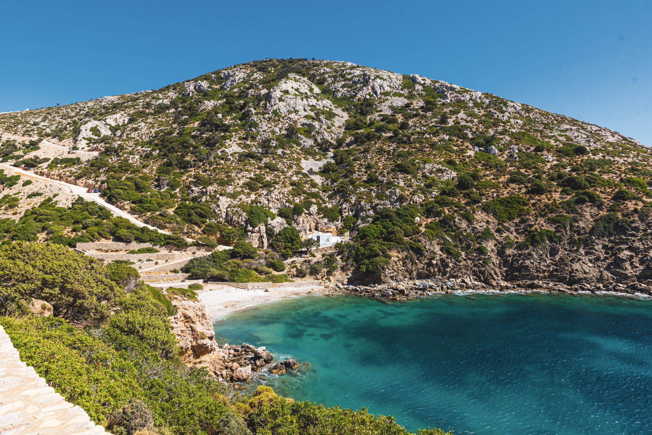 Στο παρθένο και λιλιπούτειο αυτό νησί των Δωδεκανήσων με τις πεντακάθαρες θάλασσες είναι δεδομένο ότι θα βρείτε παραλίες για όλα τα γούστα. Στα νοτιοανατολικά του νησιού και μόλις 10 λεπτά μακριά από τη Χώρα με το αυτοκίνητο βρίσκεται η Χοχλακούρα, παραλία βοτσαλωτή, ανοργάνωτη, με εκπληκτικά νερά και σκιά από τα αρμυρίκια και θέα το απέραντο γαλάζιο. Είναι σίγουρο ότι εκεί θα απολαύσετε ένα ήσυχο μπάνιο, ωστόσο σας προτείνουμε να ανακαλύψετε και τη μικρή, κλειστή και κρυφή παραλία στα δεξιά της Χοχλακούρας η οποία βρίσκεται ακριβώς κάτω από το δρόμο. Ο βράχος που αγκαλιάζει την παραλία αυτή προσφέρει σκιά σαν μια μεγάλη ομπρέλα, ενώ τα νερά είναι ρηχά με λευκό, μεγάλο βότσαλο. Χαρακτηριστικό της παραλίας είναι ο βράχος που σχηματίζει μια μικρή φυσική καμάρα και κοιτάζει το βαθύ μπλε. Πρόσβαση: μέσω ασφαλτόδρομου. Έδαφος: λευκό βότσαλο.