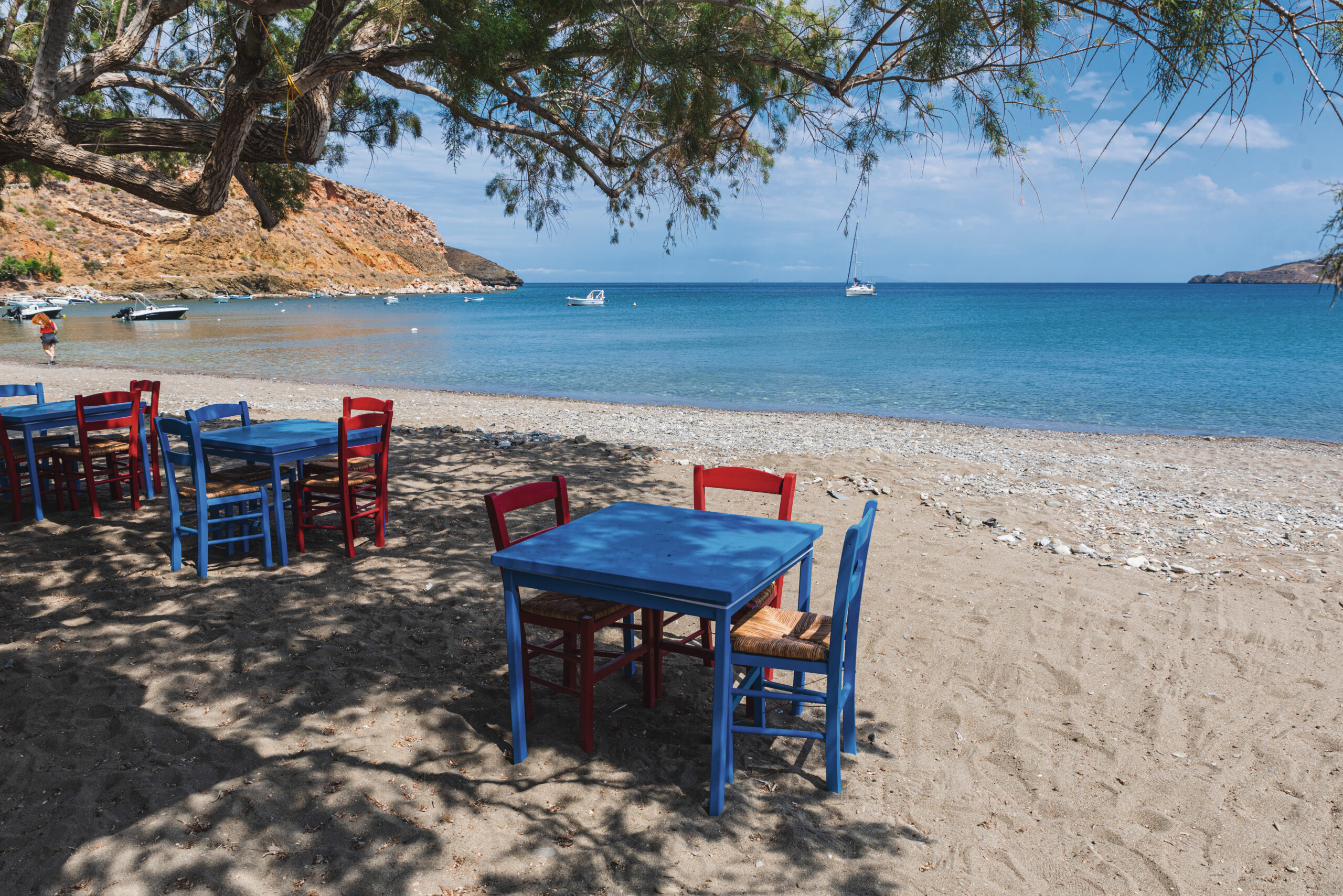 Μια από τις αρκετές πανέμορφες και άγριες παραλίες του νησιού με σχήμα πεταλούδας. Βρίσκεται στα νοτιοδυτικά του νησιού, περίπου 25 λεπτά μακριά από τη Χώρα και προσεγγίζεται μέσω ενός χωμάτινου, κακοτράχαλου δρόμου, το τέλος του οποίου ωστόσο αποζημιώνει τον επισκέπτη και με το παραπάνω, καθώς ο γαλαζοπράσινος βυθός της παραλίας σας προσκαλεί να τον ανακαλύψετε. Χαρακτηριστικό της παραλίας είναι το γκριζωπό λεπτό χαλίκι που λαμπιρίζει εντυπωσιακά στον καυτό καλοκαιρινό ήλιο, καθώς και τα διάσπαρτα αρμυρίκια, ιδανικά για δροσερή σκιά. Τα Καμινάκια θεωρούνται ημι-οργανωμένη παραλία καθώς λειτουργεί ταβέρνα, χωρίς ωστόσο σημαντικές υποδομές. Πρόσβαση: μέσω χωμάτινου δρόμου. Έδαφος: λεπτό γκρι χαλίκι.