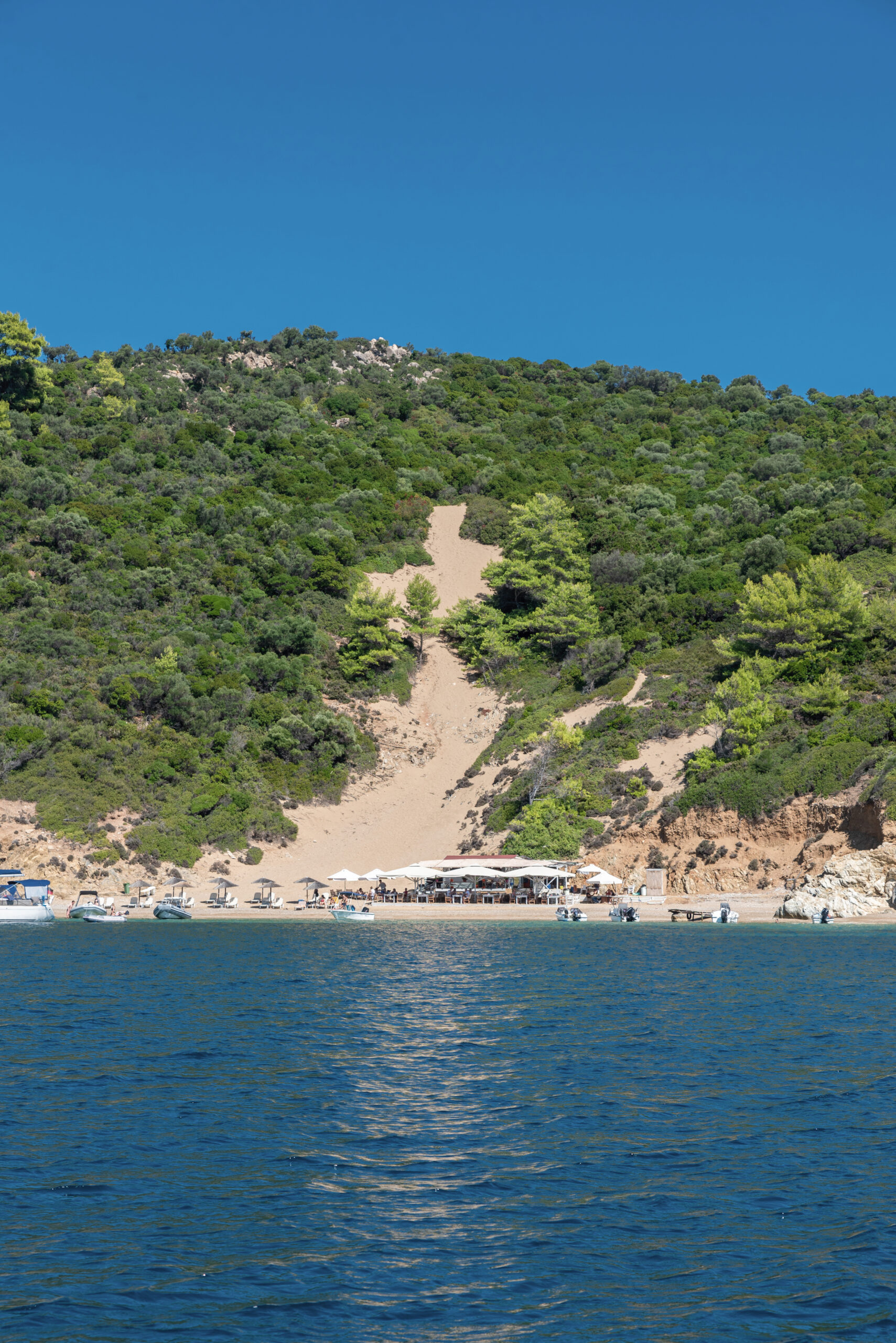 Από τις πιο ήσυχες και ξεχωριστές παραλίες της καταπράσινης Σκιάθου. Βρίσκεται στα βόρεια του νησιού και προσεγγίζεται με αυτοκίνητο. Αφού σταθμεύσετε στο πάρκινγκ, θα δείτε το πλακόστρωτο μονοπάτι το οποίο οδηγεί τόσο στην παραλία όσο και στο Κάστρο και το εκκλησάκι του Χριστού πάνω στον βράχο. Από εκεί ψηλά θα αντικρίσετε την ασύλληπτη θεα προς τα Καστρονήσια, την παραλία του Κάστρου, ακόμα και τον Άθω στο βάθος (εξ ου και το όνομα του νησιού, που σύμφωνα με τον θρύλο βρίσκεται στη «σκιά του Άθω»). Για να κατεβείτε στην παραλία θα ακολουθήσετε το μονοπάτι και τα σκαλάκια που σας οδηγούν απευθείας στην αμμουδιά και τα βότσαλα, ενώ, όπως θα παρατηρήσετε, στην παραλία λειτουργεί και ταβερνάκι με φανταστική θεα προς τη θάλασσα. Σας προτείνουμε να ακολουθήσετε και το μονοπάτι που συνεχίζει πίσω από το ταβερνάκι και μέσα στο δάσος, για να συναντήσετε τον παλιο νερόμυλο. Πρόσβαση: μέσω ασφαλτόδρομου και μονοπάτι. Έδαφος: αμμώδες και βότσαλο.
