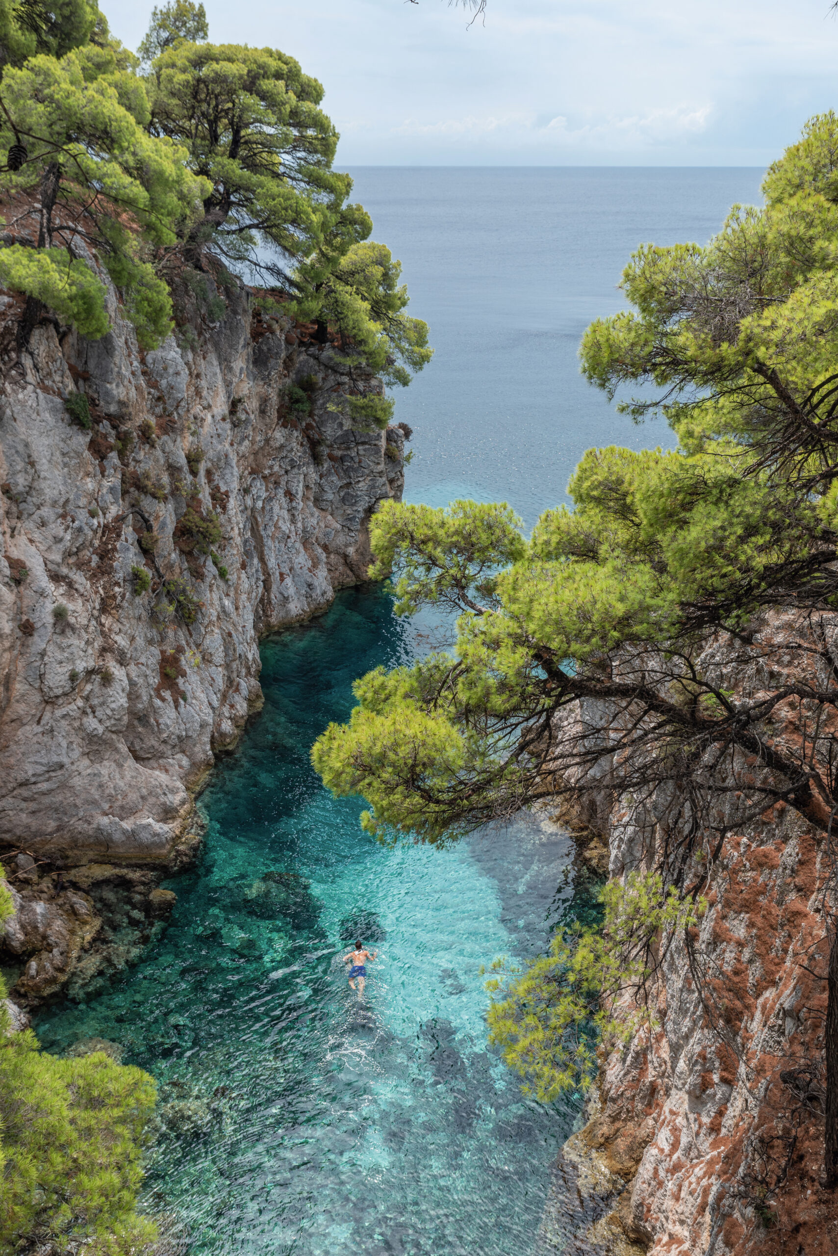 Καλά κρυμμένος πίσω από τα ψηλά πεύκα, τους θάμνους και κάτω από απόκρημνα βράχια βρίσκεται ο Μυλοπόταμος, παραλία που θα πρέπει οπωσδήποτε να μπει στο καλοκαιρινό μενού σας. Κατεβαίνοντας τα σκαλοπάτια προς την παραλία αντικρίζει κανείς το απόκοσμο σκηνικό με τα καταγάλανα βαθιά νερά, το υπέροχα σμιλεμένο λευκό βότσαλο που αντηχεί σε κάθε κύμα της θάλασσας και όλα αυτά στη σκιά τεράστιων βράχων από τη χαρακτηριστική πηλιορείτικη γκριζωπή πέτρα. Ακριβώς πάνω από τον Μυλοπόταμο λειτουργεί ταβέρνα με εκπληκτική θεα προς την παραλία, τη Σκιάθο και τη Σκόπελο, ενώ η Τσαγκαράδα και το Μούρεσι απέχουν μόλις λίγα λεπτά μακριά. Πρόσβαση: μέσω ασφαλτόδρομου. Έδαφος: λευκό χοντρό βότσαλο.