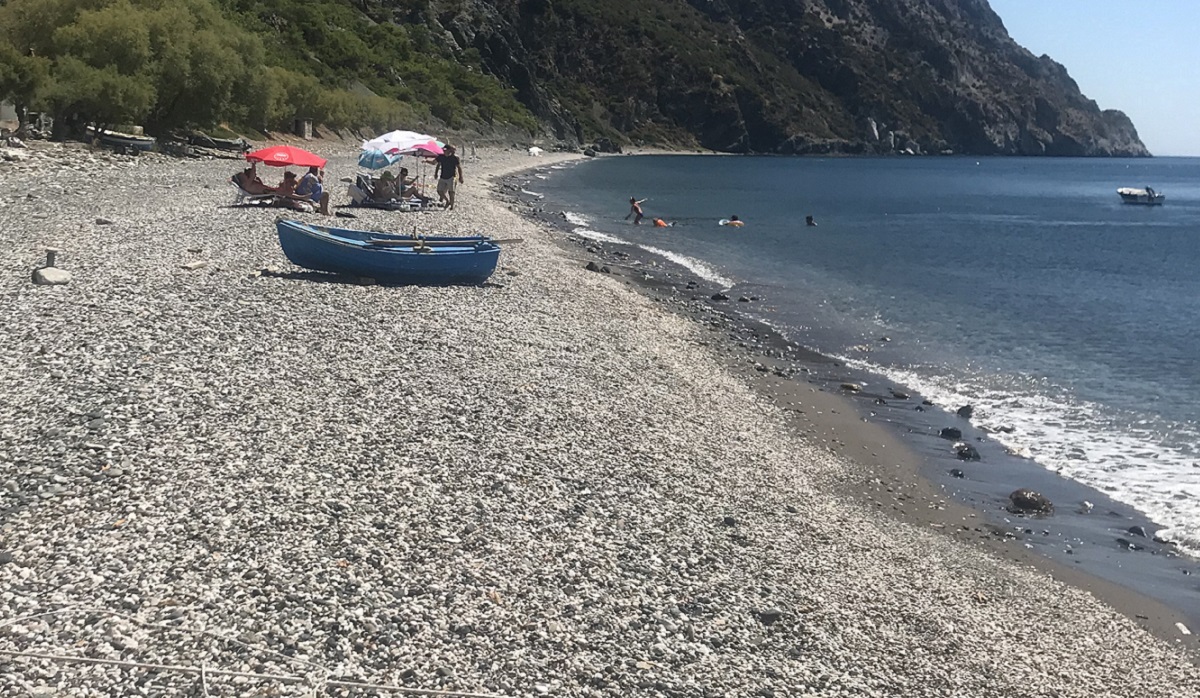 Η Άναξος, λίγο μετά την Πέτρα. Άμμος και βότσαλα, πλήρως οργανωμένη, αλλά και «σερφάτη» για τους φίλους του αθλήματος.