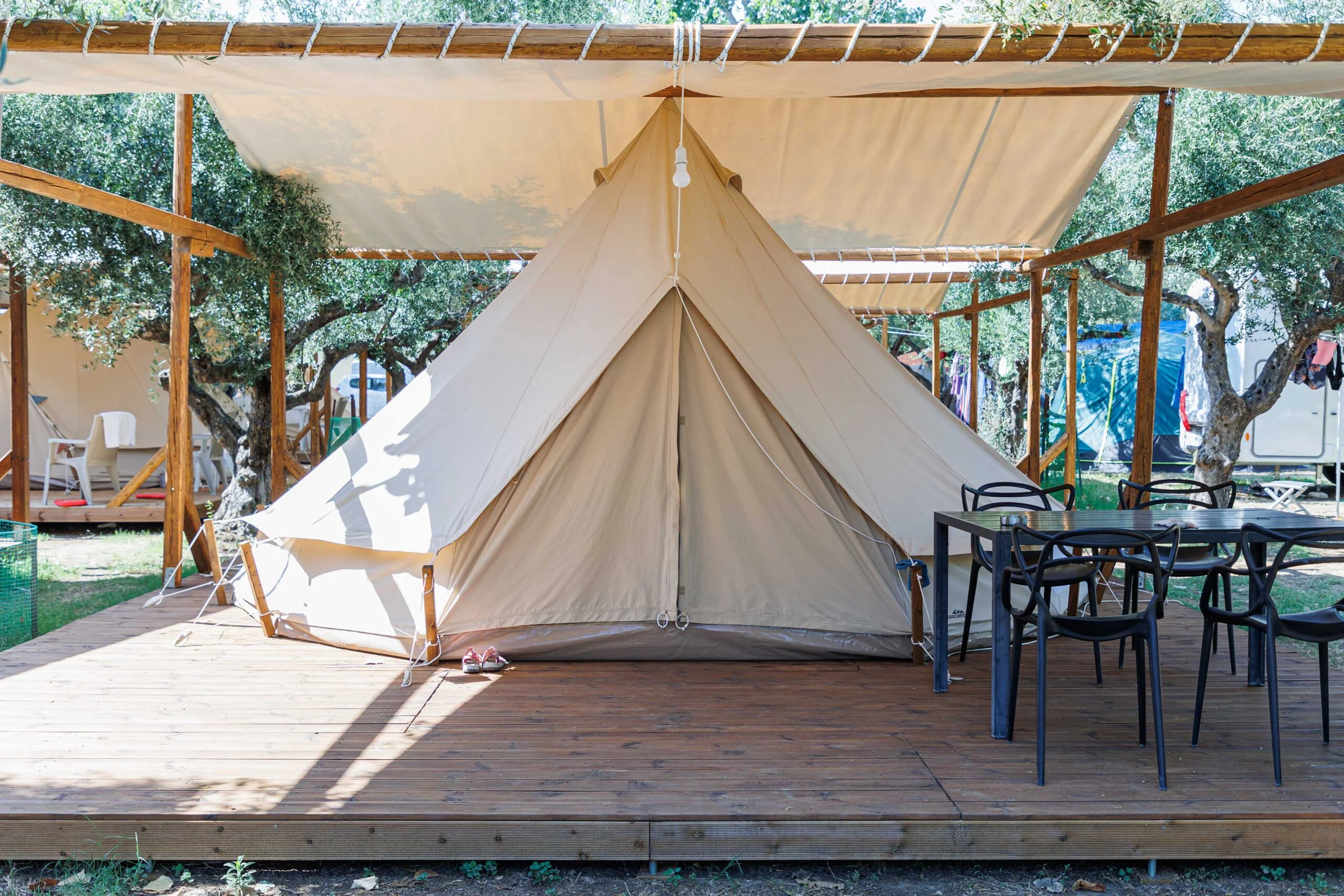 Ένα κάμπινγκ που τα έχει όλα, πισίνα, beach volley, παιδική χαρά, κοινόχρηστες κουζίνες μαγειρέματος, σύγχρονες τουαλέτες, βιβλιοθήκη, χώρο αποθήκευσης για τις σανίδες του windsurf, παιδότοπο για μωρά, πινγκ πονγκ, ποδοσφαιράκι, πλυντήρια, ηλεκτρικά, mountain και παιδικά ποδήλατα, παιδικές δραστηριότητες, σχολή windsurf, bar, εστιατόριο, mini market και ένα κατάστημα με προϊόντα ελιάς, μαρμελάδες και μέλι. Η παραλία αμμουδερή και όμορφη είναι ακριβώς μπροστά. Μπορείτε να στήσετε τη δική σας σκηνή ή να παρκάρετε το αυτοκινούμενό σας κάτω από τα δέντρα του κάμπινγκ ή μπορείτε να νοικιάσετε σκηνές glamping που είναι η πιο άνετη εκδοχή του κάμπινγκ με στρώματα, ψυγειάκι και ανεμιστήρα, σκηνές igloo ή τροχόσπιτα. (www.gythiocamping.gr)