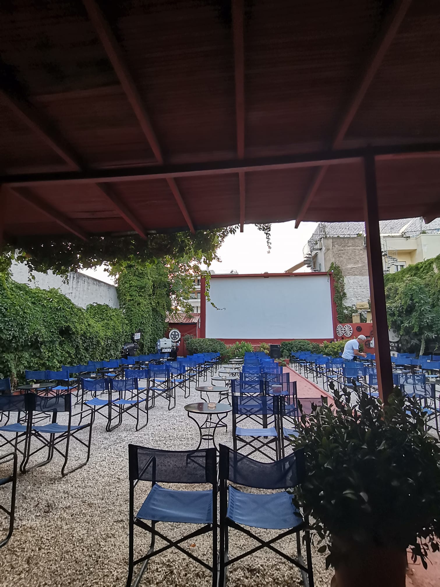 Πιάστε καλή θέση στις πτυσσόμενες καρεκλίτσες και αφήστε τα πόδια σας να ξεκουραστούν πάνω στο ψιλό, λευκό χαλικάκι. Ιδανικό σκηνικό προκειμένου να απολαύσετε τις προβολές κορυφαίων κλασικών ταινιών πριν ξεχυθείτε στην όμορφη γειτονιά του κέντρου για ένα ποτό ή φαγητό.