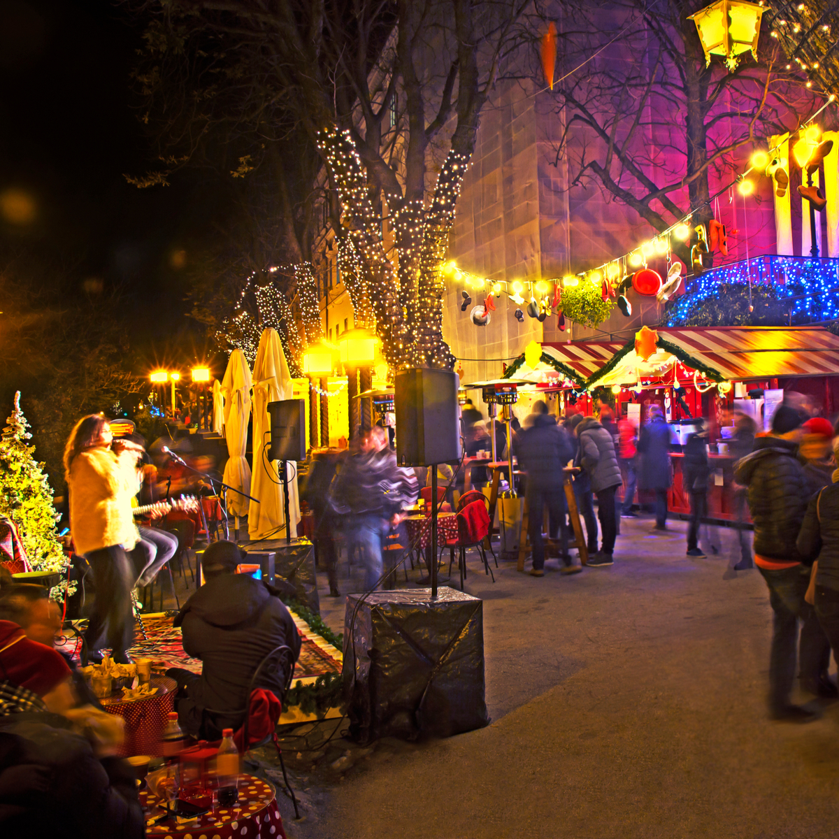 Η Βουδαπέστη έχει δύο μεγάλες χριστουγεννιάτικες αγορές. Μία στην πλατεία Vorosmarty και μία κοντά στην Βασιλική του Αγίου Στεφάνου. Η πρώτη είναι η παλαιότερη και βρίσκεται στο κέντρο της ουγγρικής πρωτεύουσας. Εδώ θα βρείτε πολλούς πάγκους που πουλάνε φαγητό, καταστήματα με χειροτεχνήματα και δωρεάν συναυλίες. Η αγορά στην Βασιλική του Αγίου Στεφάνου τα έχει όλα αυτά και έχει κάτι παραπάνω. Εντυπωσιακούς φωτισμούς με laser που αντανακλώνται πάνω στον ναό και ένα παγοδρόμιο στη μέση του οποίου υπάρχει ένα μεγάλο χριστουγεννιάτικο δέντρο.