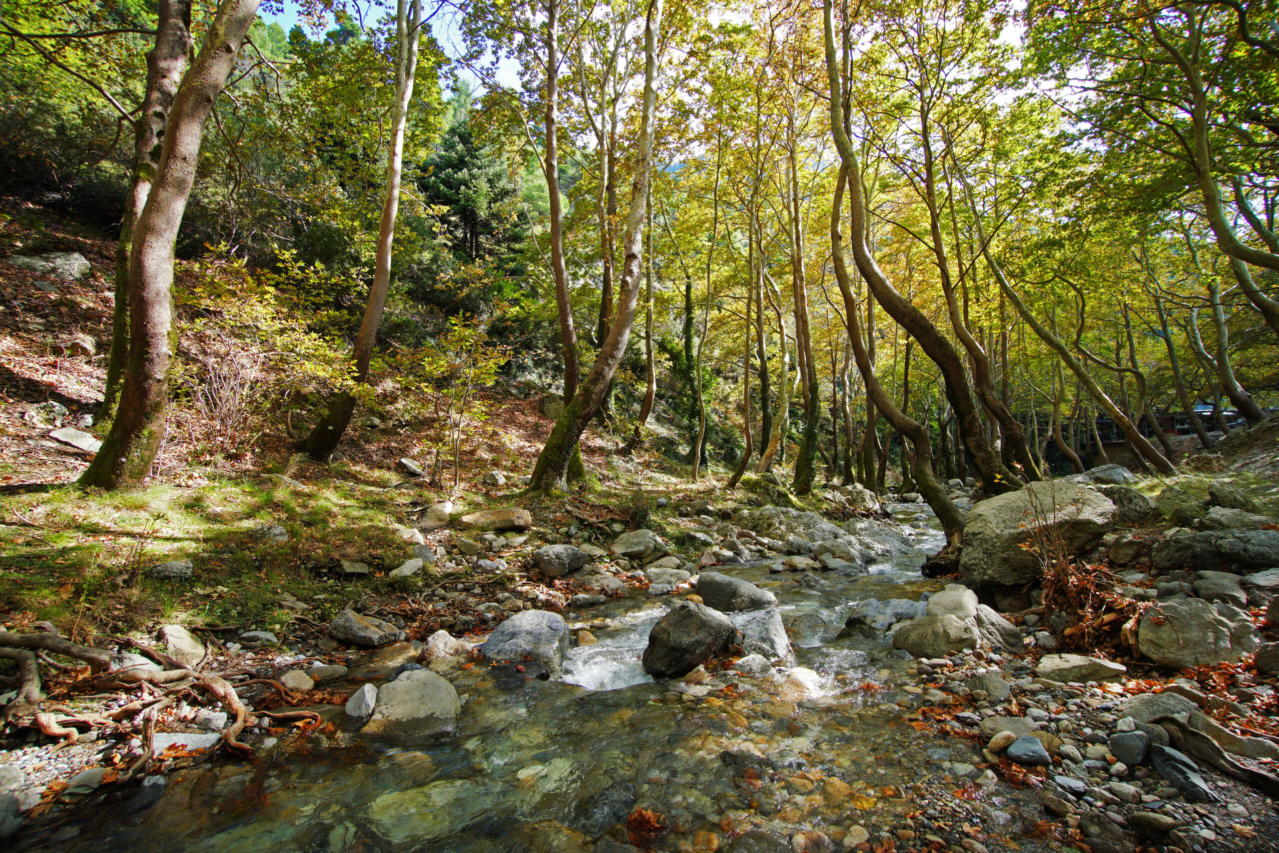 Στην Εύβοια, στους πρόποδες της Δίρφυος, βρίσκεται το Αισθητικό Δάσος Στενής. Αν και δεν έχει την έκταση των μεγάλων δασών της χώρας, η ομορφιά του είναι τέτοια που το καθιστά έναν από τους πιο αγαπημένους προορισμούς του φθινοπώρου. Πλατάνια που υψώνονται δίπλα στα ρυάκια, καστανιές που φθινοπωριάζουν, μονοπάτια που οδηγούν σε ξέφωτα με θέα το βουνό και μυρωδιές από τις ψησταριές του ομώνυμου χωριού ξυπνούν την όρεξη και τη διάθεση για περιπλάνηση. Το φως εδώ φιλτράρεται μέσα από τα φύλλα, δημιουργώντας ένα παιχνίδι σκιών που κάνει τον περίπατο μαγευτικό.