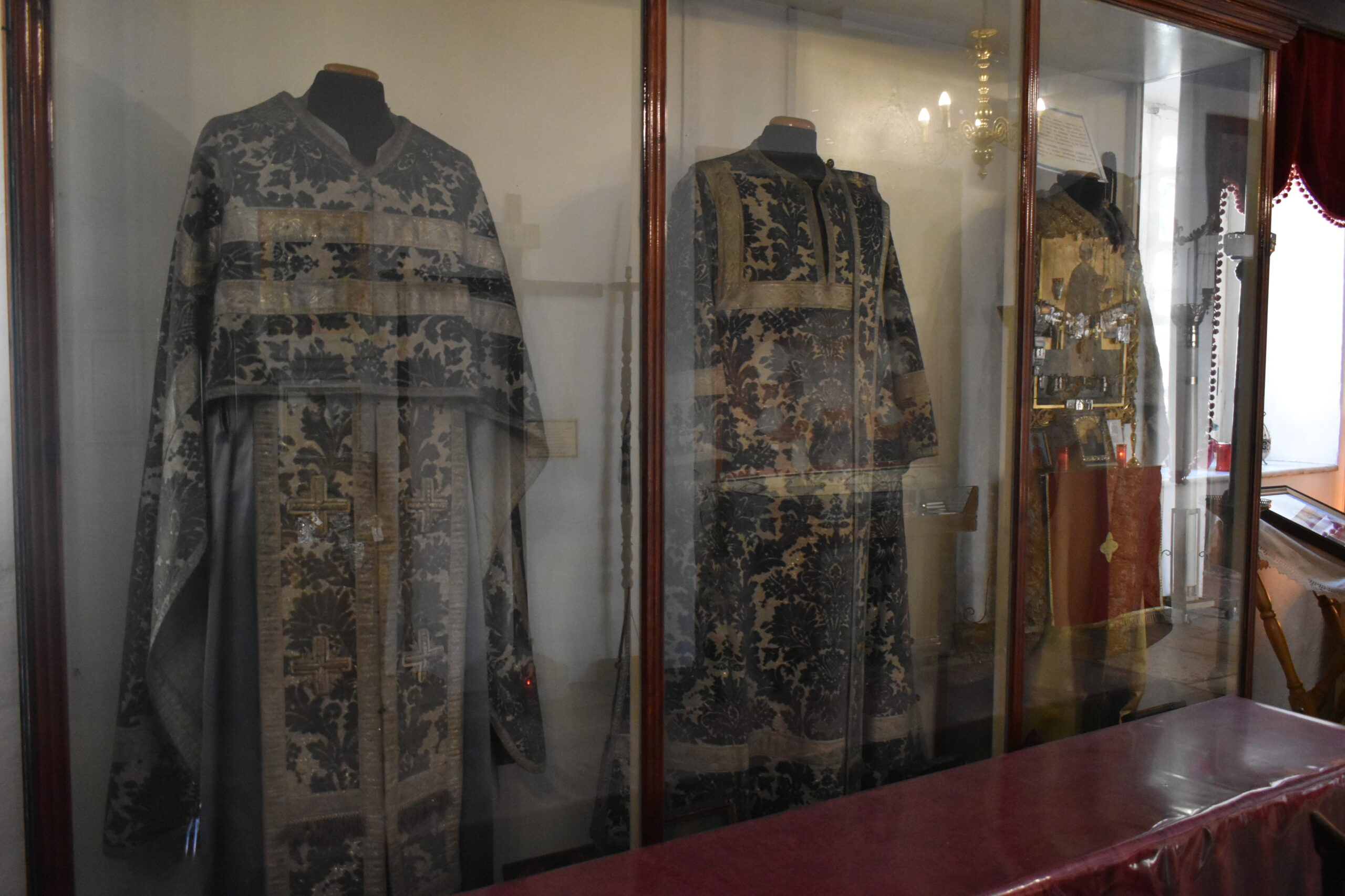 In the same space, the small museum’s display cases showcase ecclesiastical vestments, as well as the cross of the prominent Corfiot scholar Nikephoros Theotokis, who performed his priestly duties here. Other notable personalities associated with the Church of St. John include Ioannis Kapodistrias, Dionysios Solomos, and Iakovos Polylas, who attended services here. As for the interior decoration, it is equally impressive, featuring an elegant, entirely marble-crafted iconostasis, adorned with works by iconographers from both the Corfu and Cretan schools.