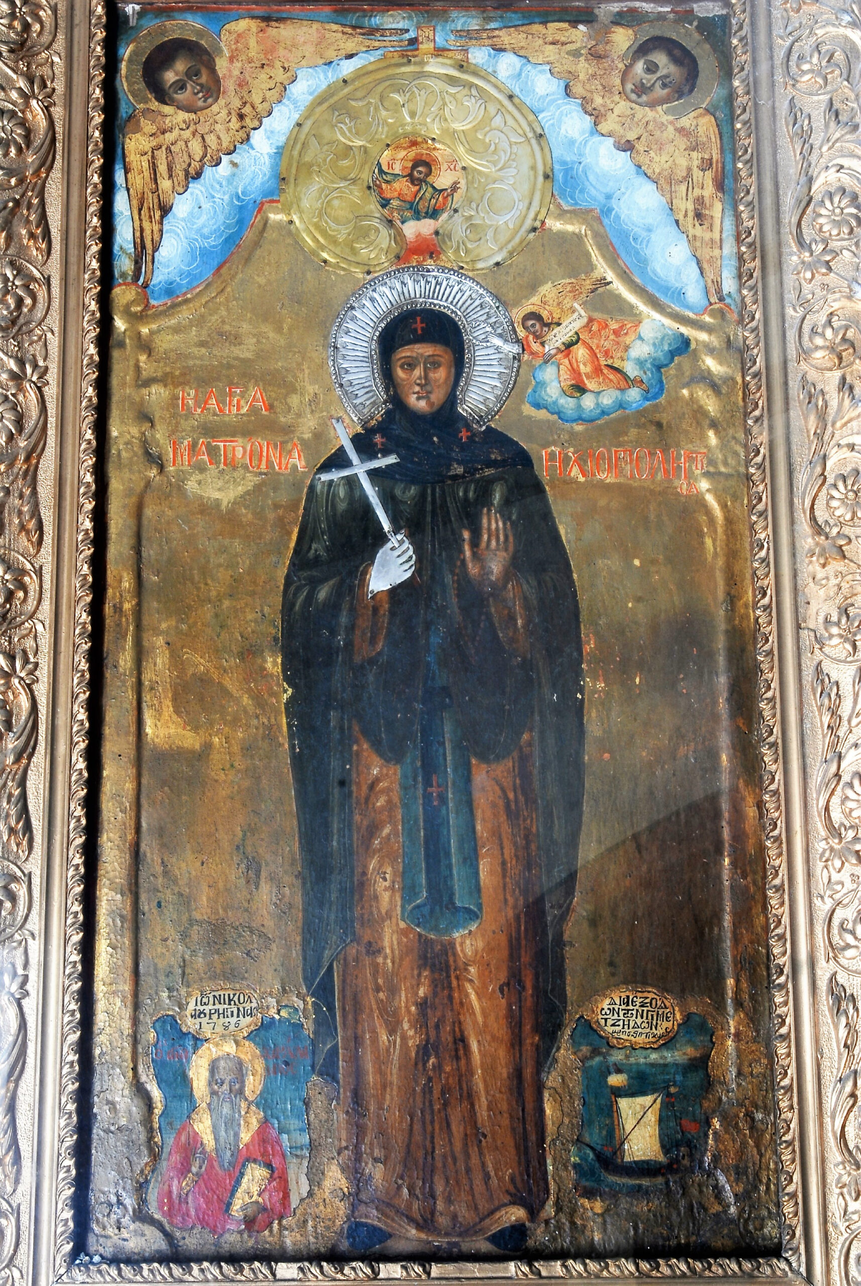 But Matrona, the beloved Kioura (altered version of the word kyra that means lady) of the locals, has her own story. She was a noble woman from Chios island who lived about 600 years ago, and, according to religious tradition, instead of getting married, like her 6 sisters, who were sought after brides, decided to study the divine.