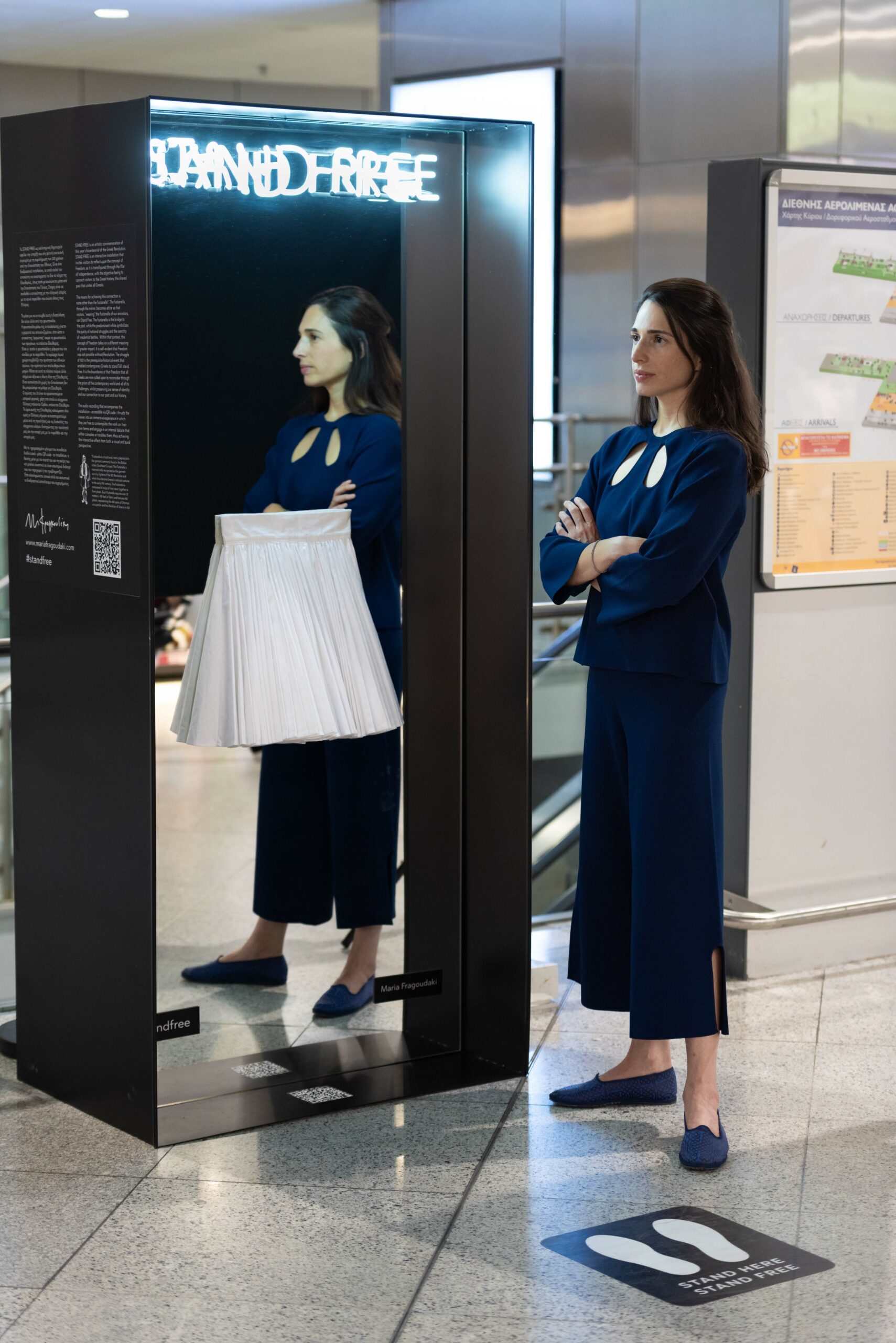 The interactive installation “Stand Free”, created by artist Maria Fragoudaki to mark the 200th anniversary of the Greek Revolution, invites visitors to reflect upon the concept of freedom and connect with Greek history. “The fustanella (traditional pleated skirt-like garment), through the mirror, becomes attire so that the visitors, ‘wearing’ the garment of our ancestors, can stand Free. The fustanella is the bridge to the past, a breath of pride,” Fragoudaki noted.
