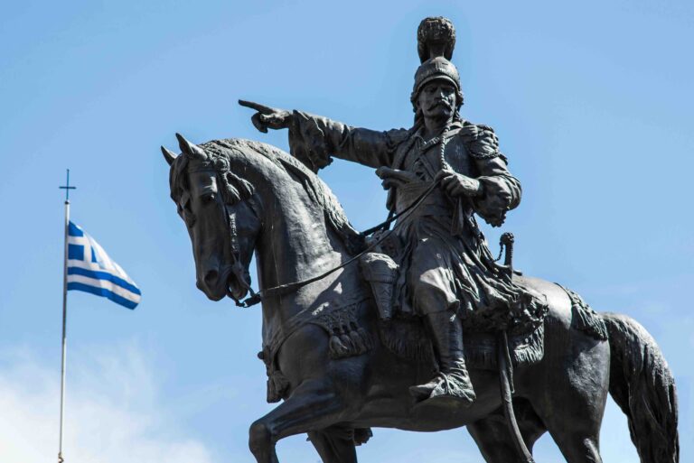 Standing proudly in front of the Old Parliament House in Athens, this statue commemorates Theodoros Kolokotronis, a hero of the Greek War of Independence. Sculpted in the early 20th century, it captures Kolokotronis in a heroic pose, a fitting tribute to his role in Greece’s struggle for freedom.