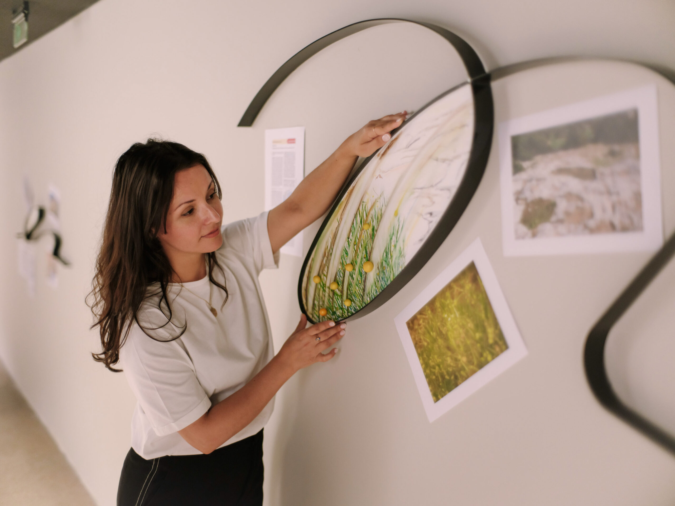 Irini Miga’s ‘Landscape in Motion’ is a site-responsive artwork that integrates painting, sculpture and found objects to depict an ever-evolving landscape. Inspired by the swirling motion of a leaf in the air, it highlights the endangered rare flora of Crete, encouraging collective awareness and conservation of the island’s biodiversity.