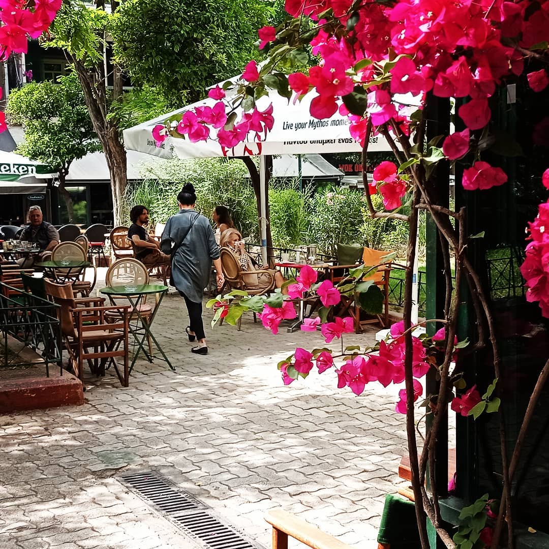 I still drift farther afield. The atrium café of the National Archaeological Museum is my usual spot for meetings; earlier today someone there recognized my voice and mentioned she’s reading my Socrates book. I like the roof-top view from Mount Lycabettus, the taverna tables that look over the Agora, and dinner at Ilissia inside the Byzantine and Christian Museum, set on Aristotle’s old Lyceum. I’ve also lodged in Exarcheia and Koukaki. But whenever the day winds down, Kypseli – with its walkable boulevard and easy mix of cafés, bars, and everyday life – pulls me back.