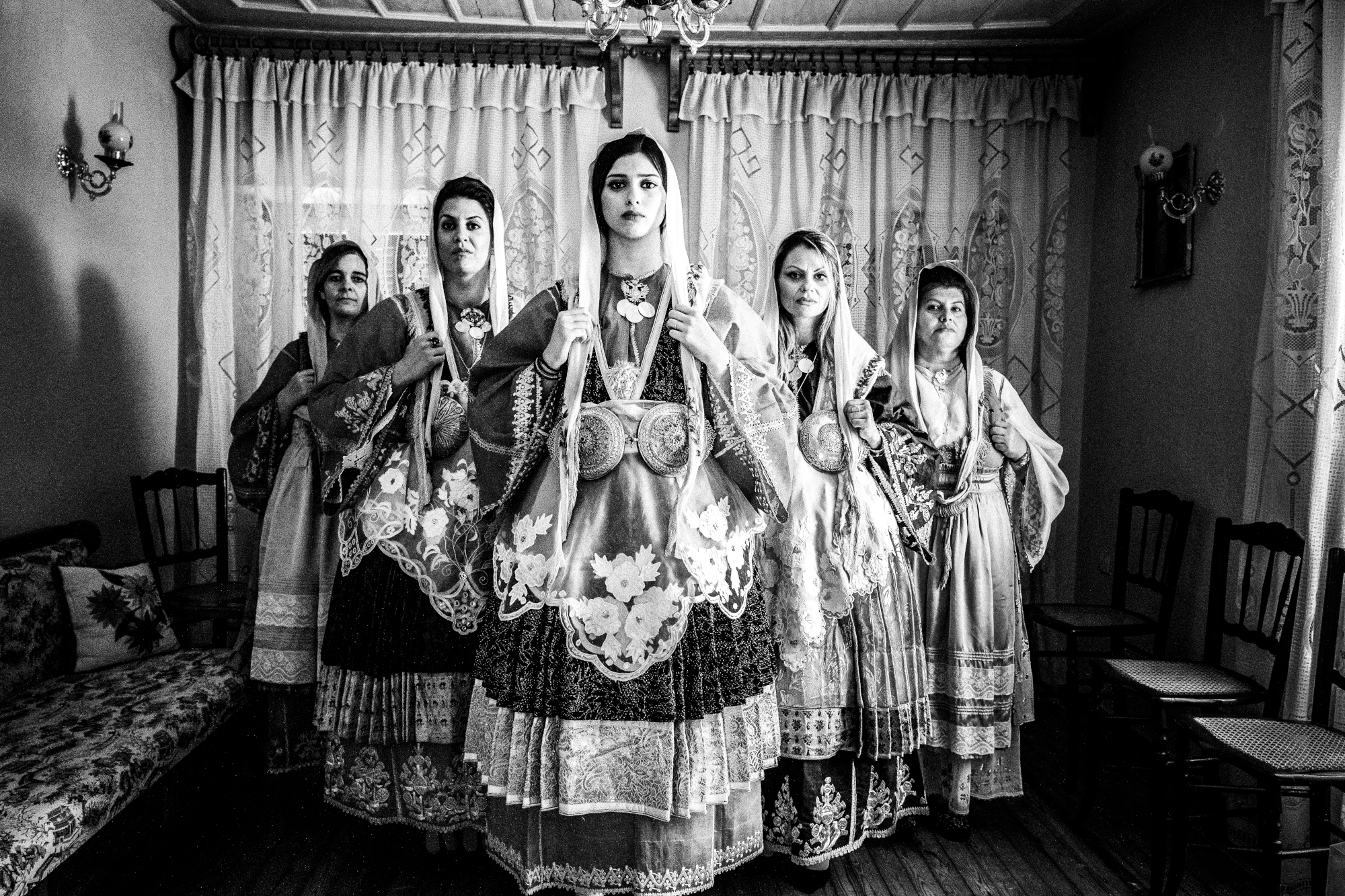 “I collaborate with the National and Kapodistrian University of Athens” he explains when I ask him how he manages to find the right people to guide him. “There are people in the know who recommend people who own proper costumes. Either originals or perfect reproductions. The Karagouna shots, for example, took over a week to complete. To find the women, the right clothes, for the clothes’ maintenance to take place” he concludes. He selects the location for each photoshoot . “I need to go and find the right space with the ideal light” he tells me as we look at a stunning photo of costumes from Thrace on his computer.