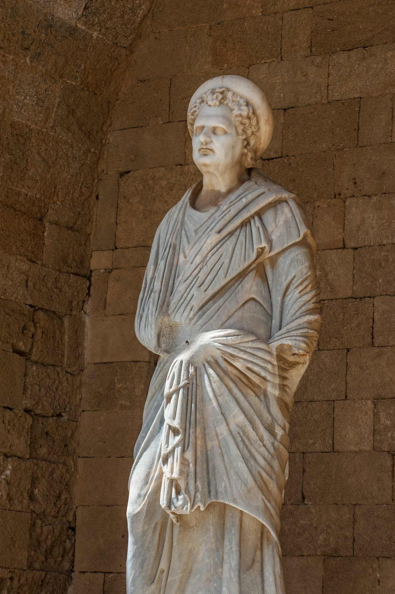 On the left, the Folk Art Museum occupies the former Armoury, presenting woodcarvings, ceramics, textiles, and traditional costumes that illuminate everyday life in the Dodecanese. Opposite, the Archaeological Museum of Rhodes is housed in the Knights’ Hospital, a grand Gothic building with Renaissance influences. Its collection includes mosaics, sculptures, and jewelry that trace the island’s artistic and social history from antiquity to the early Christian era.