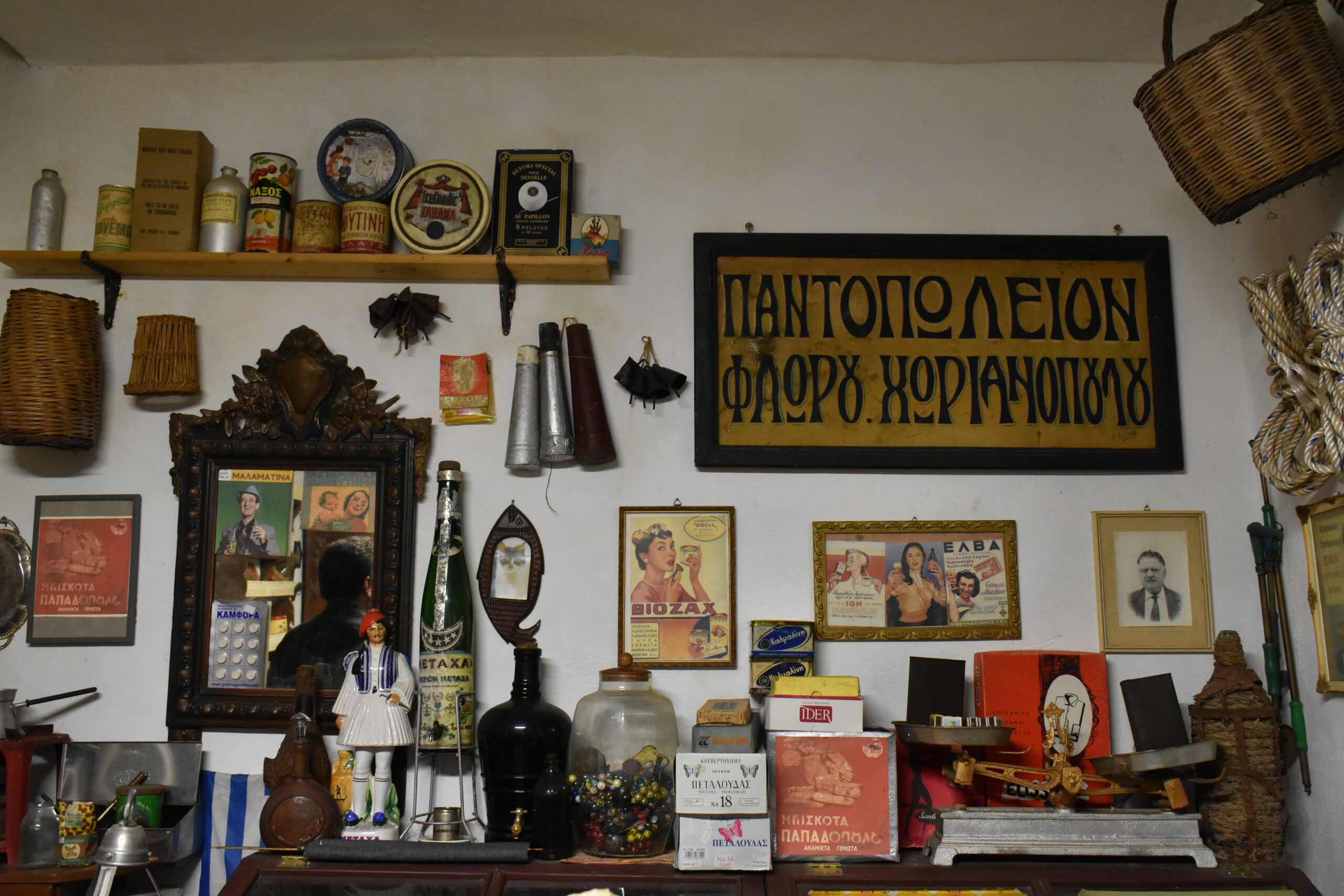 Here, you will observe the authentic tools of the village’s cooper, the workshop of the shoemaker, the equipment of an 1830 candle-maker, and find yourself in the faithful recreation of an entire general store, the first to operate in Chalki in 1935. Old typewriters, radios, cameras, military uniforms, traditional toys, looms, clothes, gramophones, and records that have reached a century of life, constitute material of great value for a deep acquaintance with the manners, customs, culture, and history of the people of Naxos.