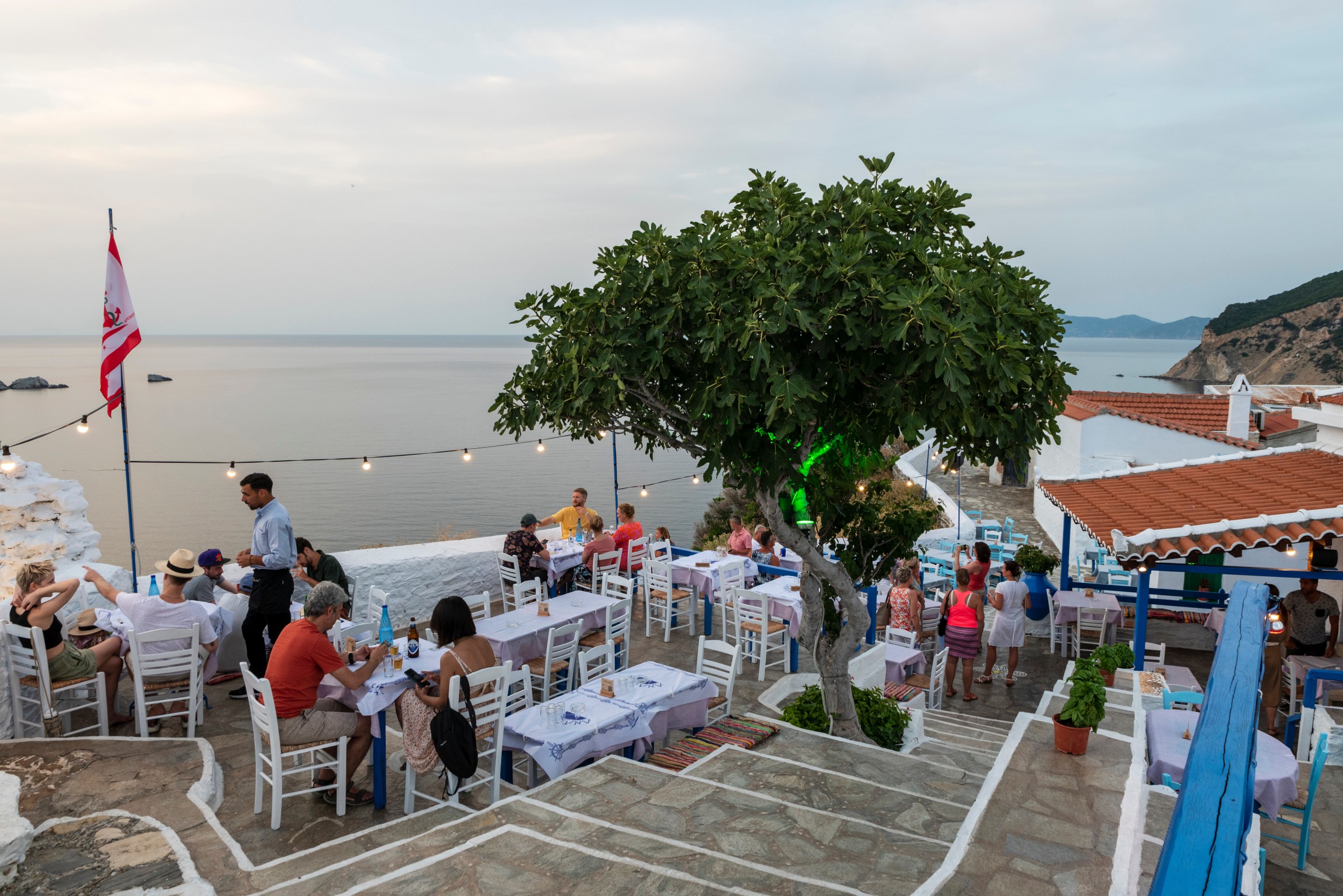 His “Rebetiki Istoria” –a small venue in Athens dedicated to rebetiko music where the best musicians of the genre would played, with patrons reverently listening without microphones, as well as his “Anatoli” in Skopelos constitute major landmarks in the history of rebetiko music. Personally, I cannot think of a more ideal place than “Anatoli” to enjoy this particular musical genre; the tables are set on the steps leading to the top of the castle in Skopelos Hora.