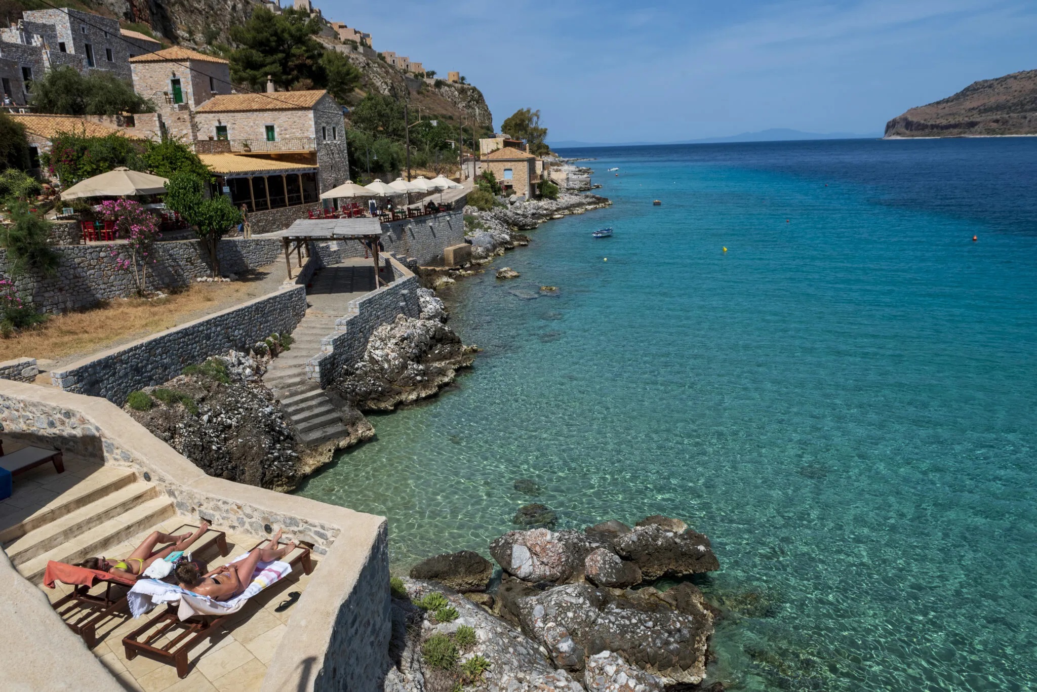 Visitors and locals typically sit at seaside tables enjoying ouzo and meze at a leisurely pace. Younger crowds like to gather a little further away, at Gnospi, for diving from the rocks into the cool Messinian Gulf waters.