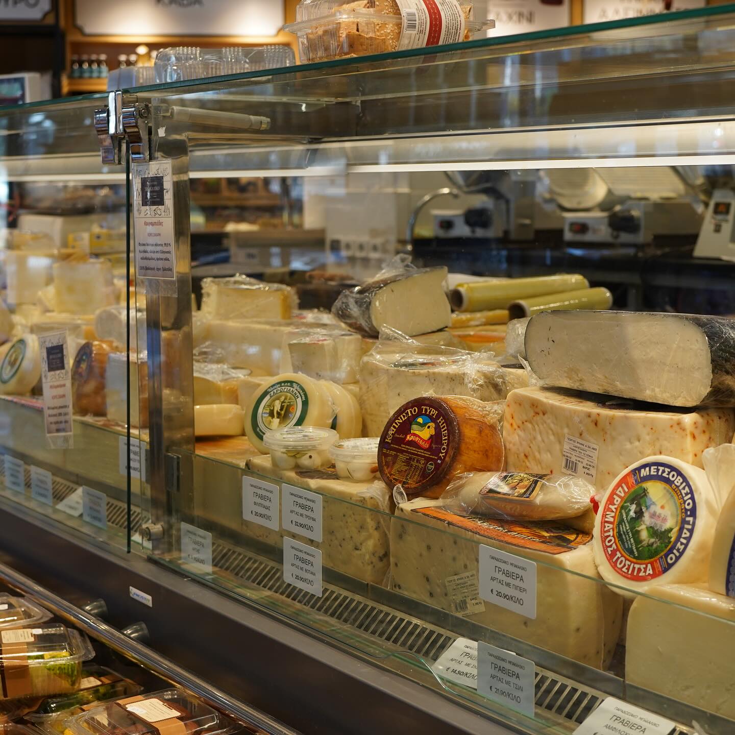 A delicatessen with a large selection of excellent cheeses, mainly Greek (and some foreign), as well as a wide range of other quality Greek products from all over the country. Standouts include Epirot cheeses from Tositsa Foundation, Tsoutsoplidi Dairy and Pappas Dairy, exceptional feta and anthotyro from Arta, Ziros cheese. Also, Rumeli cheese from dairies such as Inachos and Tsitsiridis and famous cheeses such as Naxos Graviera (5 year matured by Koufopoulos) and Naxos Arseniko, Petrino from Chalkidiki and Myrovolos from Chios (such as Mastelo with mastic). The shop sells selected delicacies (such as Manousos’ smoked pork shoulder and Aliartos’ country chicken sausage), Adamantina pasta, organic Greek trahanas, legumes from Evros, Geodi jams and Italian pasta with cuttlefish ink and mushrooms.