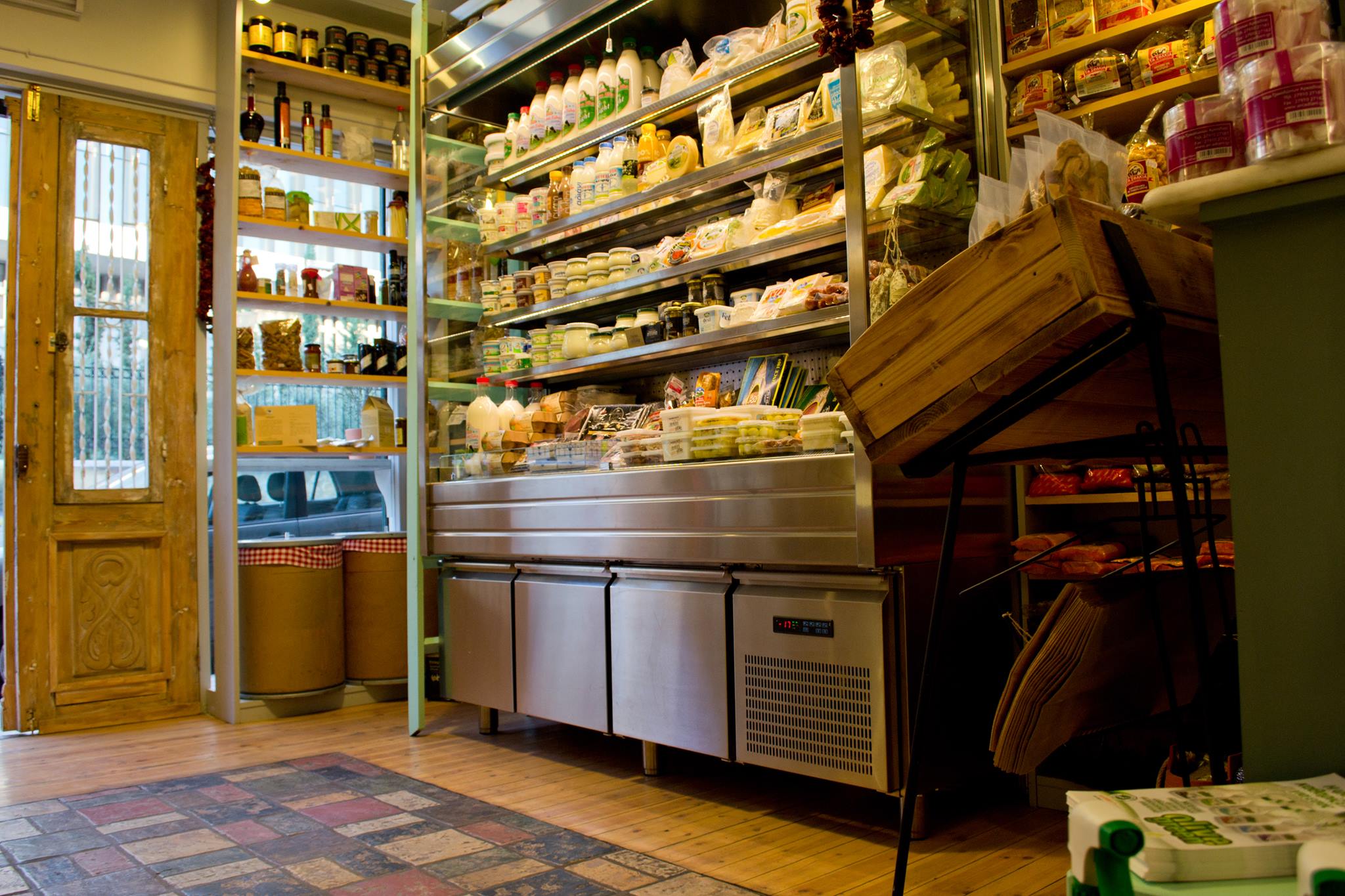 A grocery delicatessen with a wide range of selected products from all over Greece. Many graviera cheeses from Crete and many other cheeses (Kalavrita Feta from Militsopoulos, Petrino from Chalkidiki from Stathoris, Sitià’s Xigalo from Kouvarakis), deli meats (Corfiot Nouboulo and Salado) and buffalo meat from Kerkini Farm, honey, Kytherian rusks and wood-fired bread from Epidaurus, pasta with buffalo milk from Ano Poroia, spreads, organic and free-range eggs. A well-stocked wine cellar.