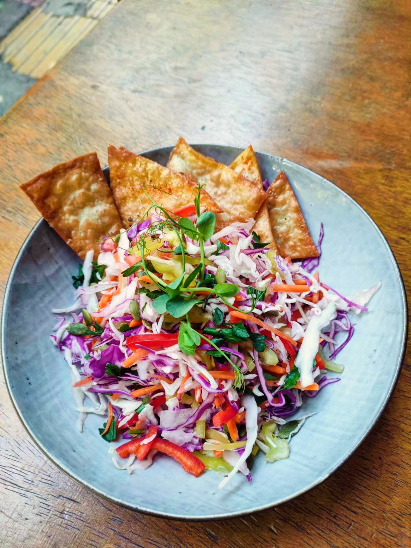 Avit, named thus because its owners spent enough years in London to enjoy playing with words, serves tasteful and well-presented vegan dishes like baby broccoli with parsdnip cream, midso and hazlenut, mushrooms convincing the tastebuds as fried ‘calamari’, a pink Ceasar’s salad with vegan chicken and hearty pasta dishes like agile, olio e pepperoncino, lasagna, served on their Italian nights, or carbonara. The menu offers choices for both lunch and dinner based chiefly on Mediterranean cuisine. Dessert options include an airy and fluffy baklava cheesecake and a mouthwatering banoffee. The restaurant is known for its cozy atmosphere and friendly staff.