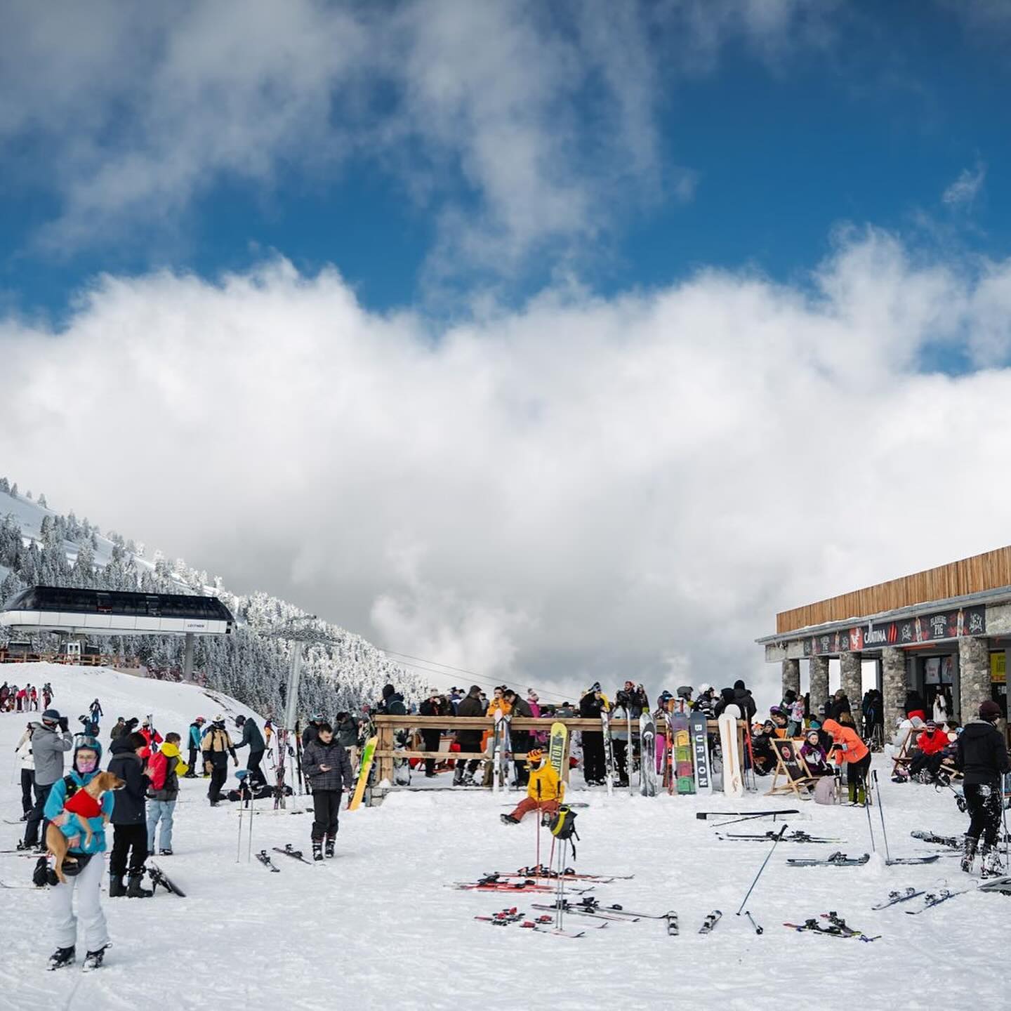 There are also three chalets, one of which, at 2,110 meters altitude, has a panoramic view, with restaurants, cafes, shops selling and renting ski equipment, and ski and winter sport schools.