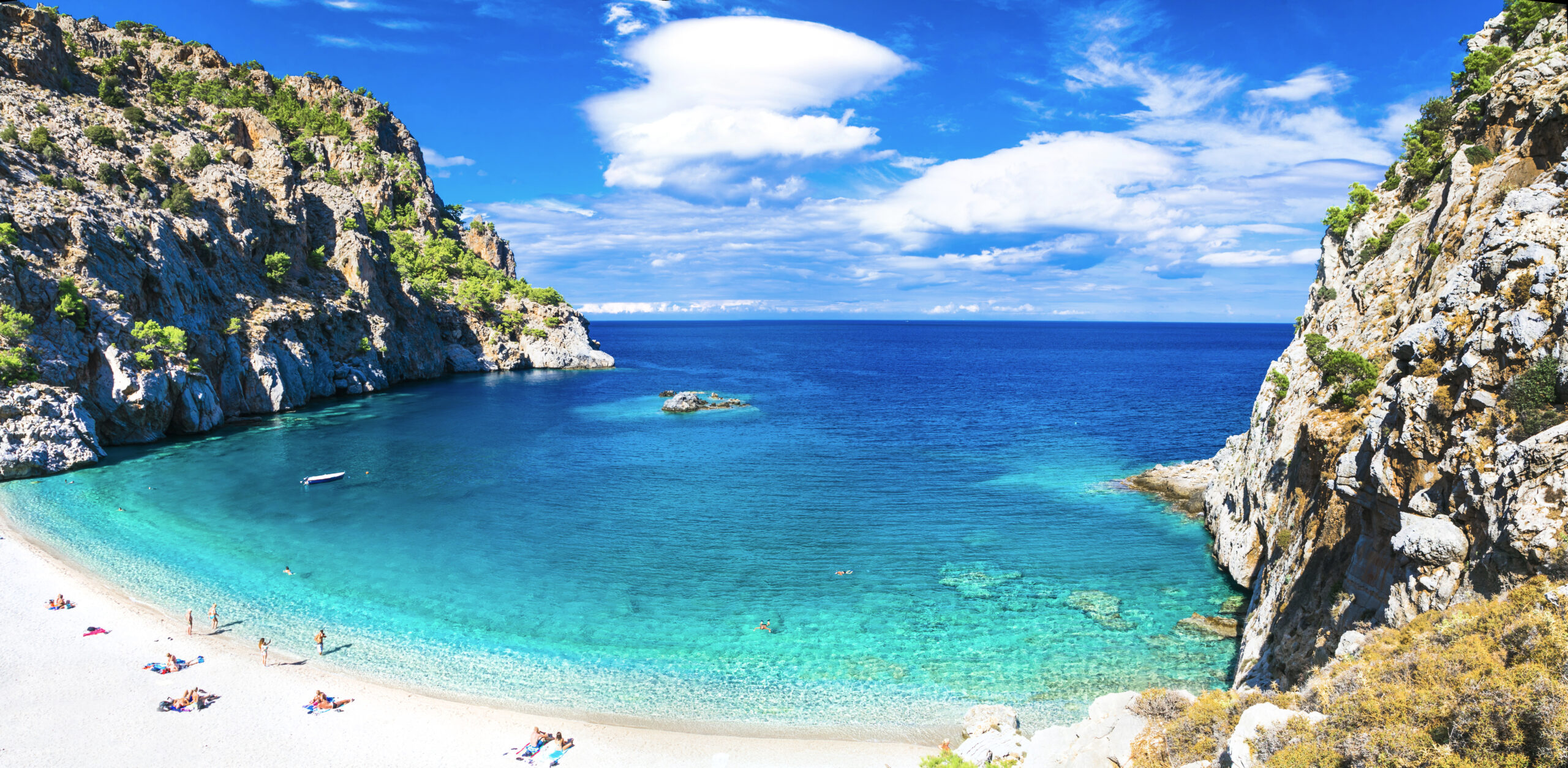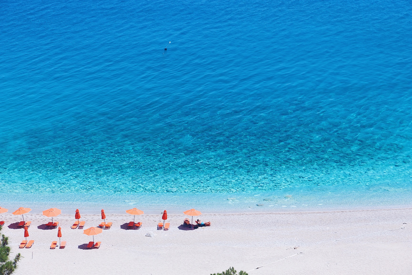 It is considered the most beautiful beach on the island and one of the best in all the Mediterranean, with significant international distinctions. The pine-clad mountain and the sea with turquoise waters create unforgettable surroundings, and the crystal-clear seabed is ideal for diving and snorkelling. There are umbrellas, sunbeds, and a taverna.