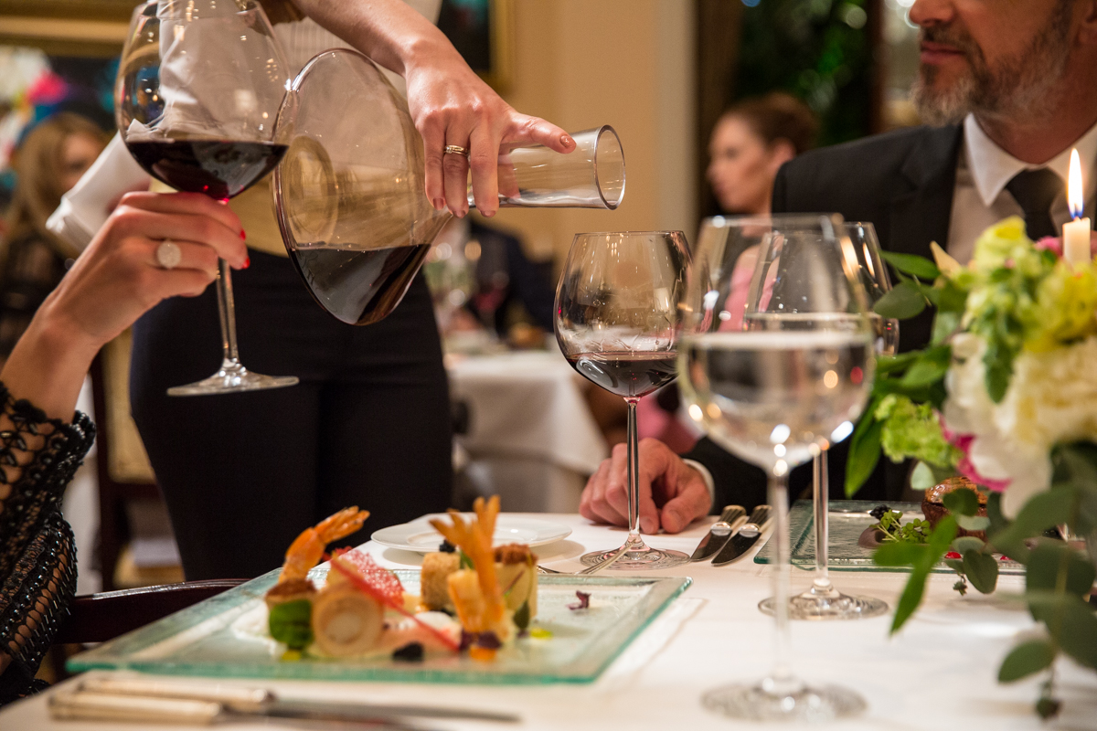 For each type of wine we use the appropriate glass and of course we follow the serving sequence of wine, i.e. if the customer chooses red wine we will present it next to him with the trolley, we will pour it into a jug, etc.”