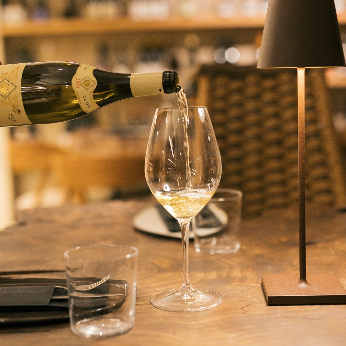 The first impression you will get is of a small, welcoming space dedicated to wine. But once you enter and discover the staircase leading to the underground wine cellar, you will find that it holds hidden charms. The wines here, which amount to around 300 labels, are sorted by geographical indication. Of these, 50 (more or less) can be ordered by the glass. Interestingly, however, the list changes four times a year, as does the menu, to follow the seasonality.