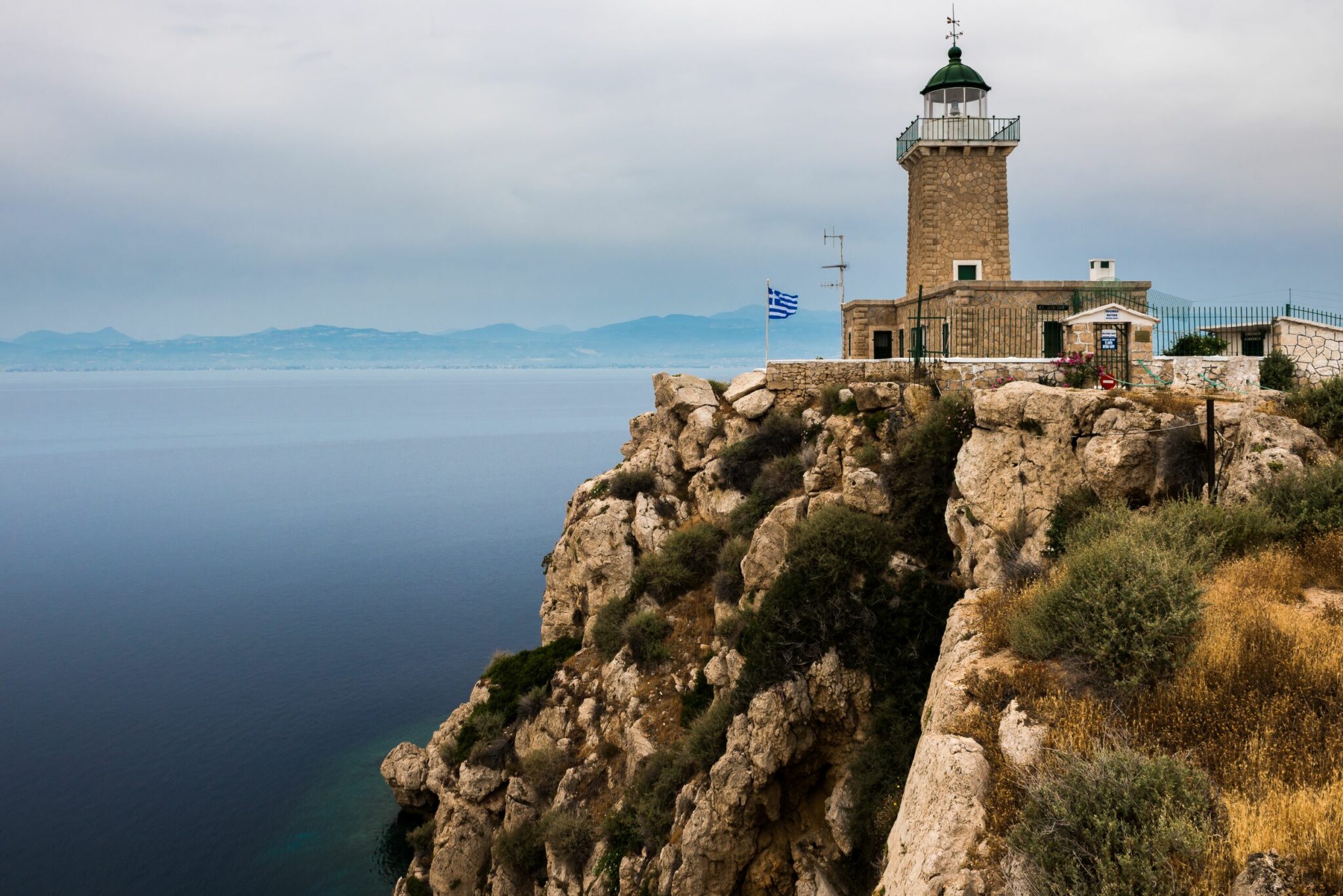 The archaeological site features a terrific beach, largely unknown, directly in front. At this time of year, we chose not to take a dip, but, instead, took a walk along a dirt track that actually led us to the highlight of the day, the Heraion lighthouse, at the tip of the peninsula. You may have seen this lighthouse on social media. It is one of the most impressive lighthouses in Greece, making it the subject of countless photographs.