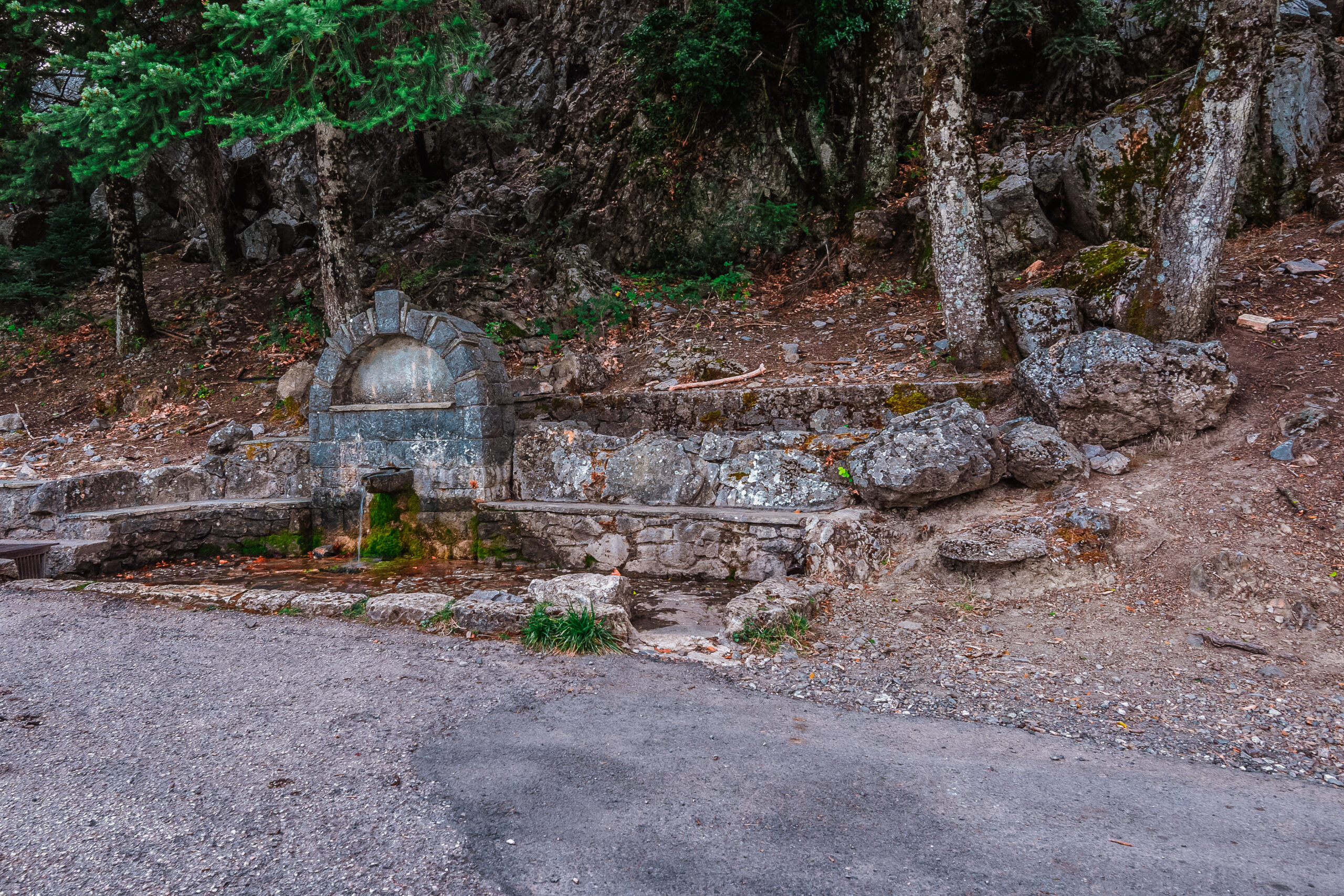 One of the most popular trails at Mount Parnitha, this route begins from the Flabouri refuge and reaches a recreation park at the Mola location. Passing by many springs, hence its name, the Trail of Waters is relatively easy to cover, without any major altitude shifts. The trail begins from the left side of the refuge, leading to the Koromilia spring as its first stop, and continues for the Messiano Nero area, which hosts a kiosk and offers a lovely view of mountain’s eastern side.
