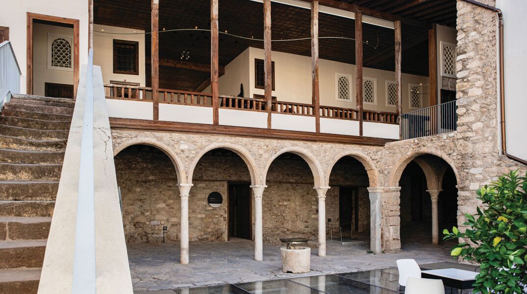 Lysikratous street branches out to many other small and large streets in Plaka that are all wonderful to explore. The busiest and most well-known of these is Adrianou street, where you’ll find the boldest and widest array of souvenirs, clothes, accessories and jewelry, and places to eat and drink. One of the city’s most unmissable sights along this road is the Benizelos Mansion, also known as ‘Athens’ oldest house’, and once home to Agia Filothei, the city’s patron saint. With its sturdy stone walls and narrow windows, the 18th-century mansion reflects Byzantine and post-Byzantine influences, embracing an Ottoman-style courtyard with arched porticos. Inside, visitors see storerooms and presses, echoing the home’s functional design. If you follow Adrianou to the end you’ll reach the Ancient Agora and the Roman Agora.