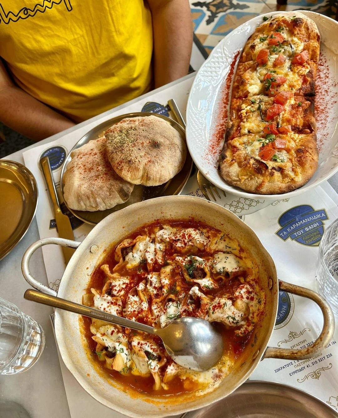 Just off Athinas is Evripidou street, famous for its spice shops like Elixir and Bahar, as well as the city’s famous charcuterie and cheese treasure trove, Arapian, and the deli restaurant Ta Karamanlidika tou Fani, where cured meats characteristically dangle from the ceiling.