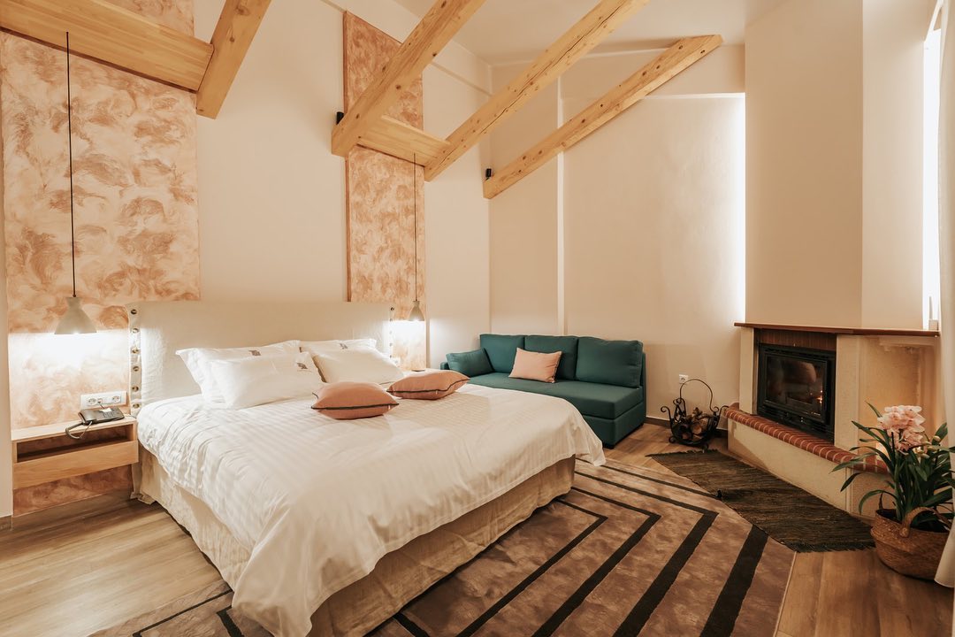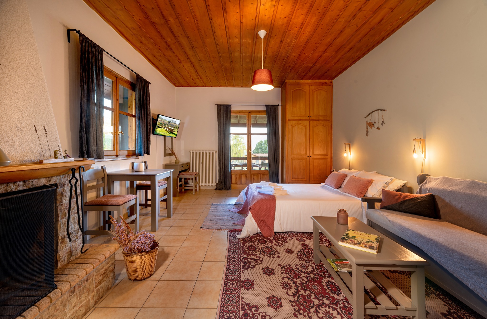 This boutique property offers 12 thoughtfully styled rooms, blending traditional design elements with modern comforts. Fireplaces in select rooms create a welcoming ambiance, making it an ideal choice for intimate stays in Kalavryta.