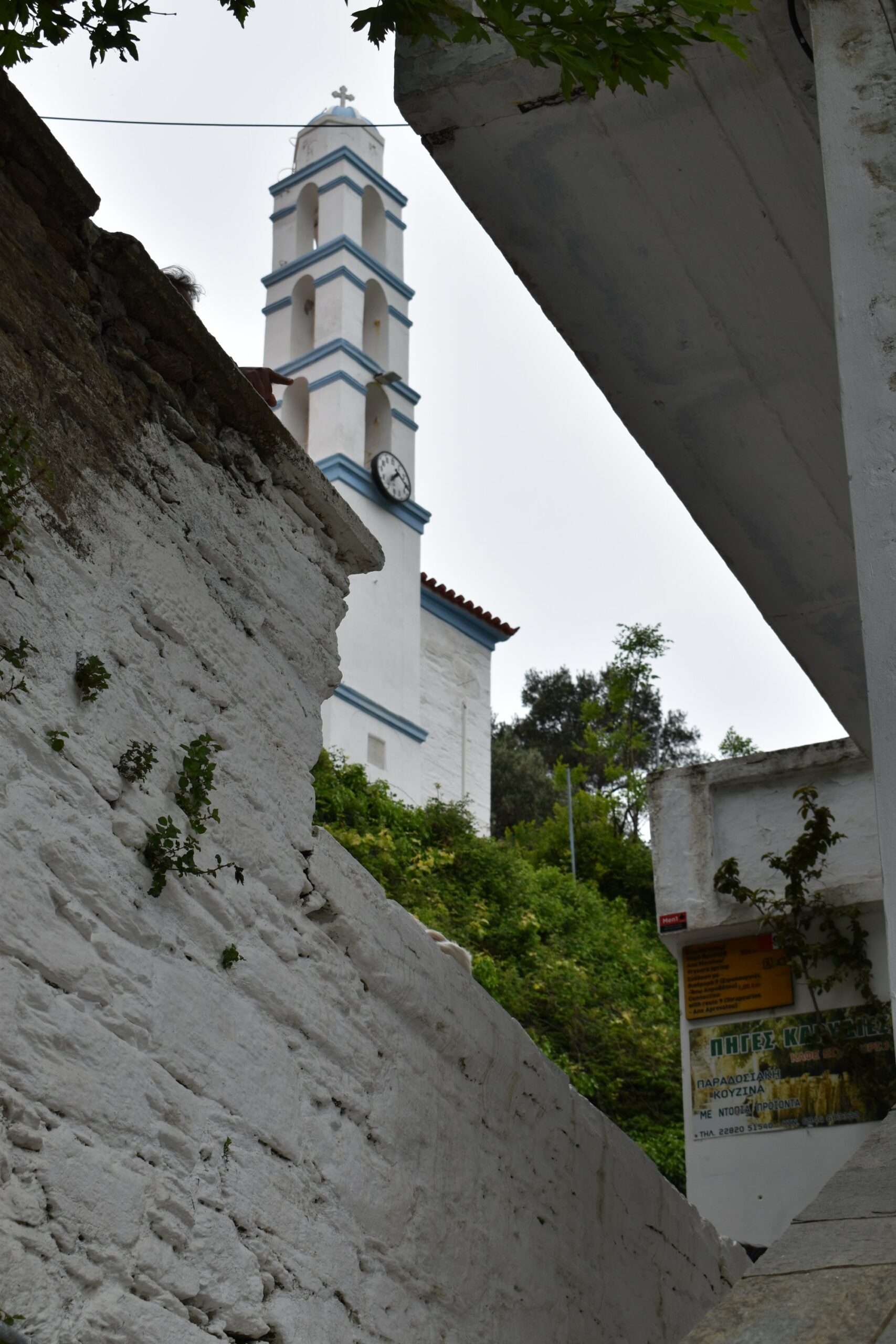 At the village entrance, visitors are greeted by lion-head taps with running water, filling creeks throughout the village. These taps are situated below the Panagia Tis Koumoulou church, featuring a tall bell tower. The village also features small waterfalls and a stone bridge for a very picturesque setting, especially under the autumn light.