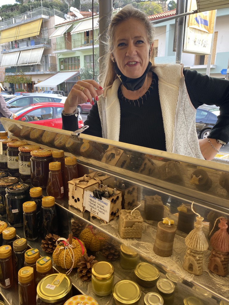 Among the many regional specialties, you’ll find Kalamata olives, sfela cheese, pasteli, honey, lalagia, and Poliani apples. In addition to the vibrant display of agricultural products from Southern Peloponnese, the market also features fishmongers, butchers, and stalls selling herbs and teas from the nearby mountains.