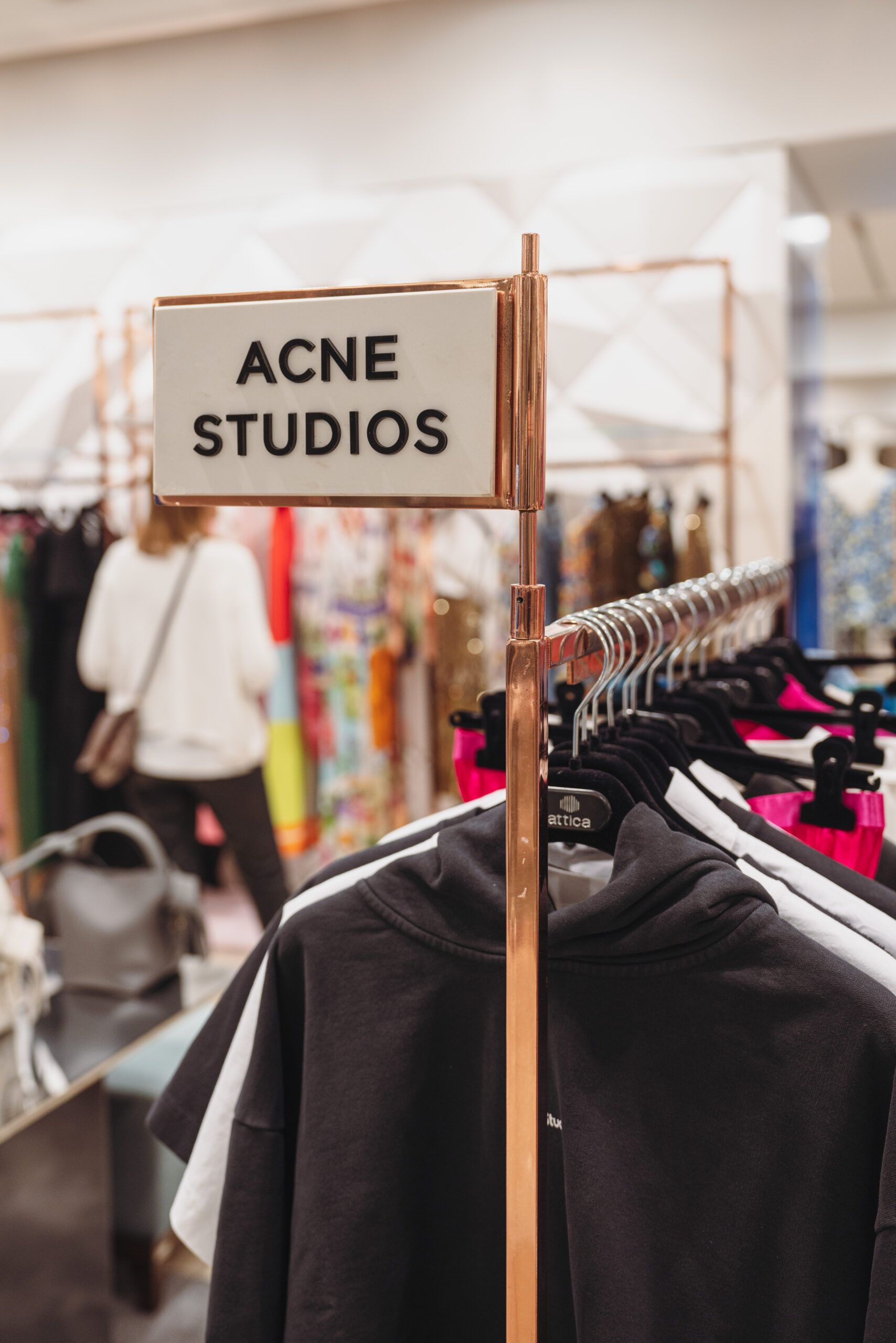Many of the world’s most significant clothing and accessory brands are gathered here, across the floors of Golden Hall: Jacquemus, Saint Laurent, Prada, Jimmy Choo, Paris Texas (inside Kalogirou), Acne Studios, Moncler, Zadig & Voltaire, Ganni, Farm Rio, Marni, JW Anderson, Self Portrait (inside the attica department store), Elisabetta Franchi, and Alberta Feretti. (Eponymo)