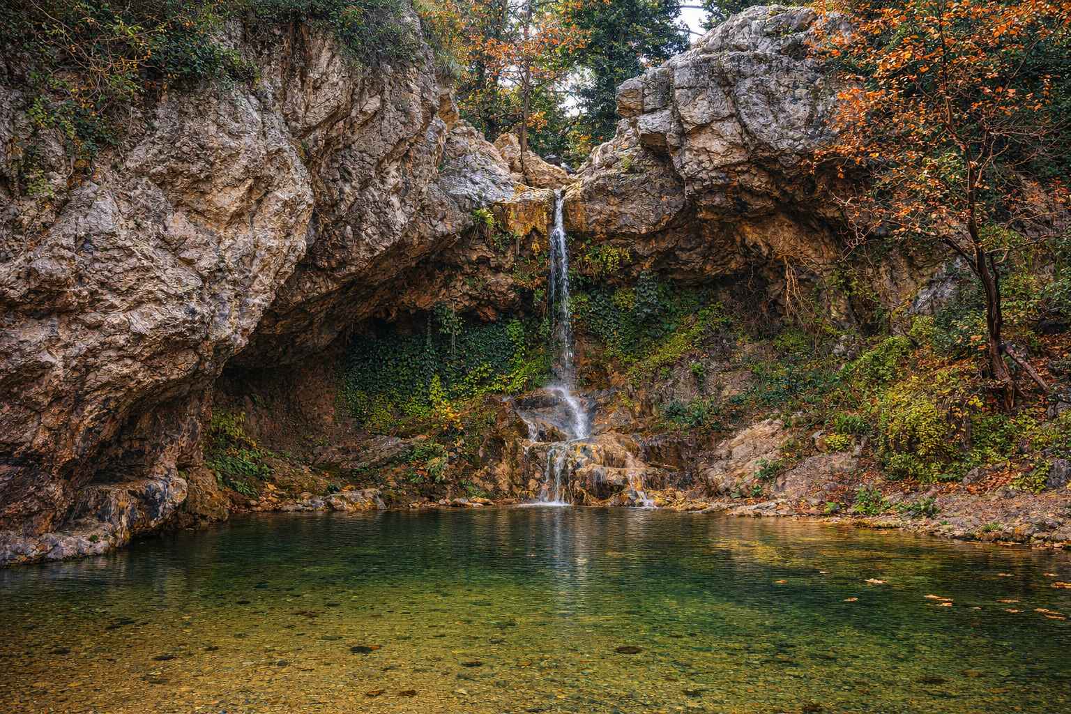 The waterfall drops from about 15 meters and is fed by the Sepias River, forming small pools below. Spring is the right moment to come, when winter rainfall still gives the water force and the surrounding greenery has not yet hardened into summer. Even for those not setting out for a full hike, this is an easy, beautiful way into the landscape.