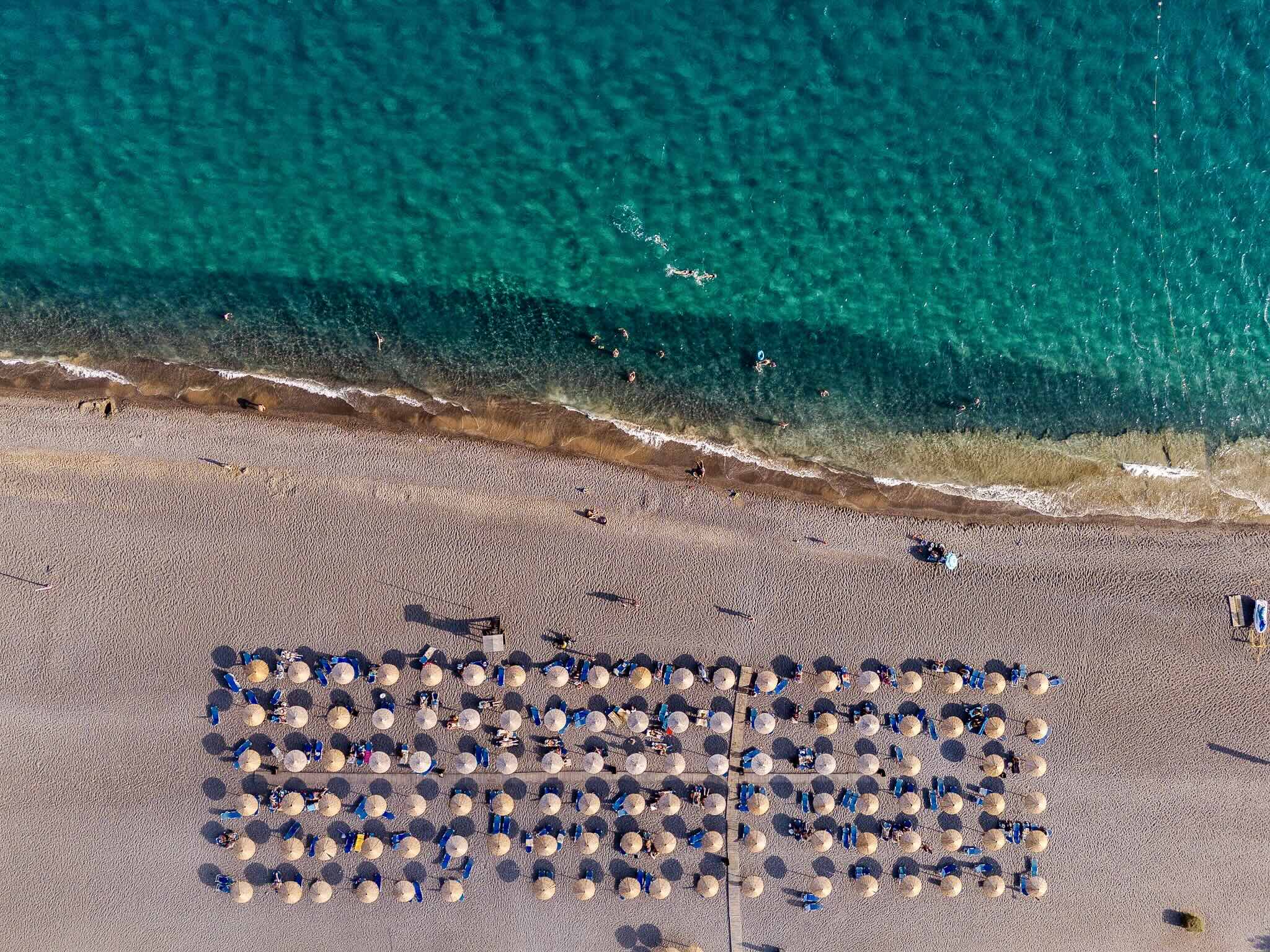 At Almiros the river slips into the sea as if testing the temperature, cooling the shallows to a soft mineral chill that feels almost alpine. Along the banks a mixed chorus of reeds, date palms, and sky-high eucalyptus leans in to form a braided canopy, their scents—green sap, resin, salt—braiding too. The sand is pale, the water a blue so lucid you can count each ripple. Despite the Edenic staging the setup is turnkey: sun loungers in neat rows, lifeguard tower, a kiosk for iced café frappé. Families claim the gentle shallows, snorkelers drift toward the rivermouth, and everyone paddles in water clear enough to double as a mirror. Nature shows off, organization keeps the peace, and Almiros earns its spot as the area’s perennial crowd-pleaser.