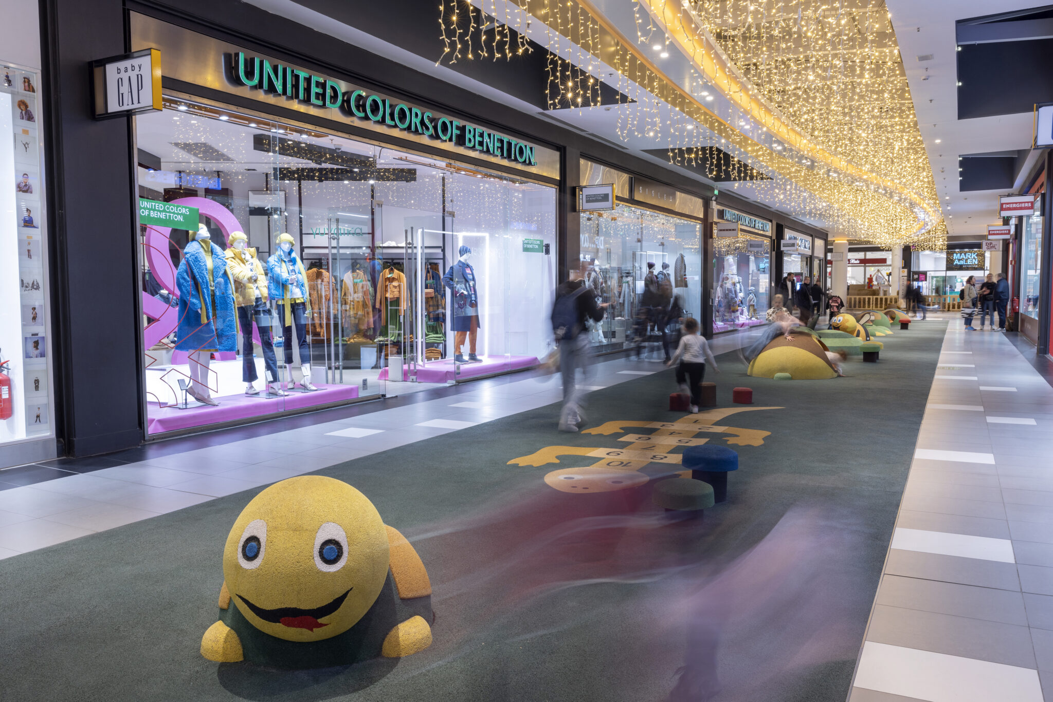 If you still choose to take the kids with you on your tour around the mall, don’t forget to pass through the specially designed section where you’ll find all the children’s shops. Here you can take the weight of your feet and let the child play around for a while with fun and creative games that are scattered around this area.